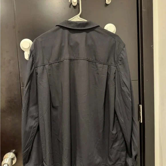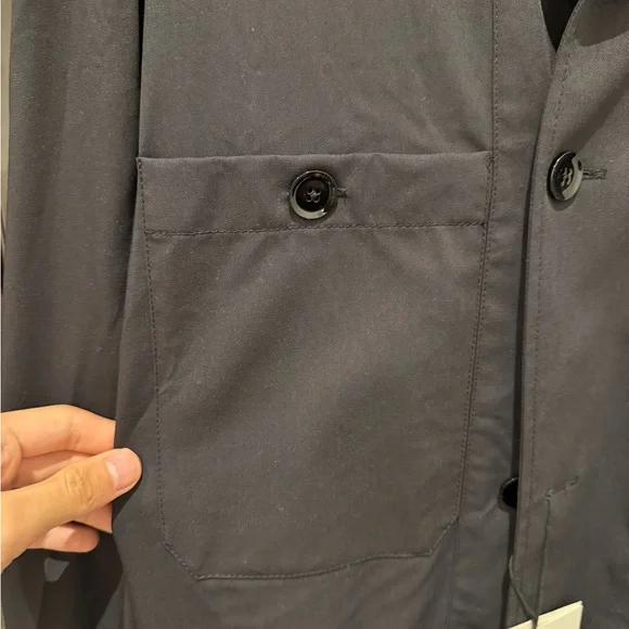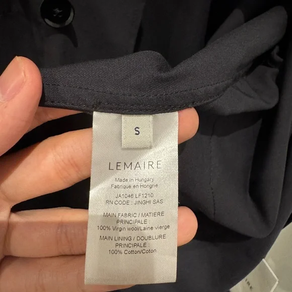 SA little bit oversized but perfectly fits me (177cm 62kg)100% woolExperience the refined simplicity of the Lemaire Black Lightweight Utility Jacket. Designed for versatility, this jacket offers a relaxed fit and minimalist style, perfect for both work and casual occasions. Its lightweight construction ensures comfort and effortless elegance.
