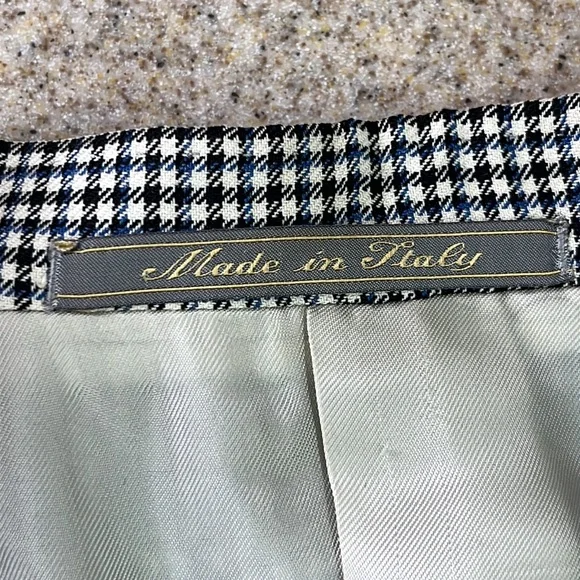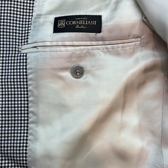 Cornelian I Made in ItalyVirgin Wool and SilkMen’s Sports Coat Size 52 Eu Black, Blue and Cream PlaidThese are previously owned and laundered. Overall great condition. Comes from smoke free home. Please see all photos for approximate measurements and any flaws, tears, rips, stains, imperfections …. They will be pointed out in the photo if any are found. Please don’t hesitate to ask any questions prior to purchasing.