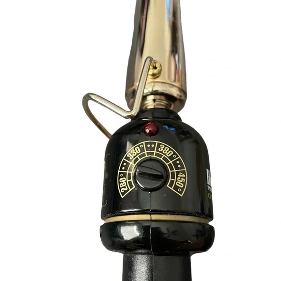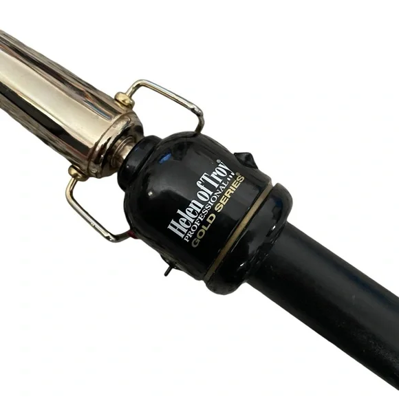 Helen of Troy Professional Gold Series Curling WandIn great preloved condition Achieve the perfect curls every single time with the Helen of Troy Professional Gold Series Curling Iron.This high-quality styling tool is designed to give you salon-worthy curls in the comfort of your own home, thanks to its advanced gold barrel and versatile temperature settings. Whether you're looking to create tight, bouncy curls or looser, more relaxed waves, this curling iron is the ultimate addition to your beauty arsenal.Brand: Helen of TroyType: Hair ironColor: Black & GoldShape: BarrelHair Type: AllProduct Benefits: Creates beautiful, long-lasting, defined styles