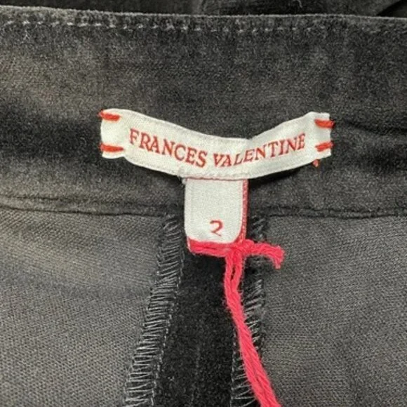 Frances Valentine Women's Lucy Velvet Cigarette Pants Black Size 2 – New With TagsDescription:Step into timeless elegance with these Frances Valentine Lucy cigarette pants, crafted from luxurious black velvet. Designed for a slim, tailored fit, these pants sit comfortably at the waist and taper neatly at the ankle for a sleek silhouette. The rich texture of the velvet adds depth and polish, making them a perfect choice for evenings out, festive gatherings, or an elevated everyday look.Details:New with tagsSize: 2Color: BlackStyle: Lucy – Slim fit, cigarette legSoft velvet fabric with a smooth finishElegant, versatile style ideal for both day-to-night wearStyle Tags:#VelvetVibes #EffortlessElegance #TailoredChicCategory: Women > Pants & Jumpsuits > Dress Pants