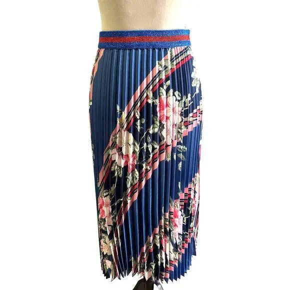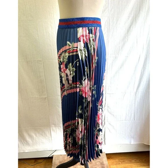 Effortlessly elevate your wardrobe with the Mangano Midi Skirt, a piece that showcases a stunning blue floral print, complemented by a flattering pleated design and an elastic waistband that ensures a comfortable fit. The high-rise silhouette lends an elegant line, making it ideal for a variety of occasions, from business meetings to casual outings, or even cocktail parties. Crafted in Italy, this skirt exemplifies Mangano's commitment to quality and style. Whether you're dressing for travel, work, or a social event, this skirt's all-season adaptability and designer accents, such as the elastic band, ensure a look that's both timeless and contemporary.
