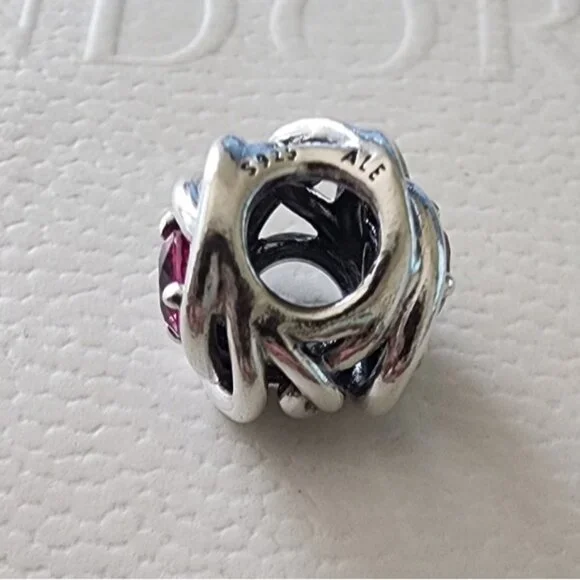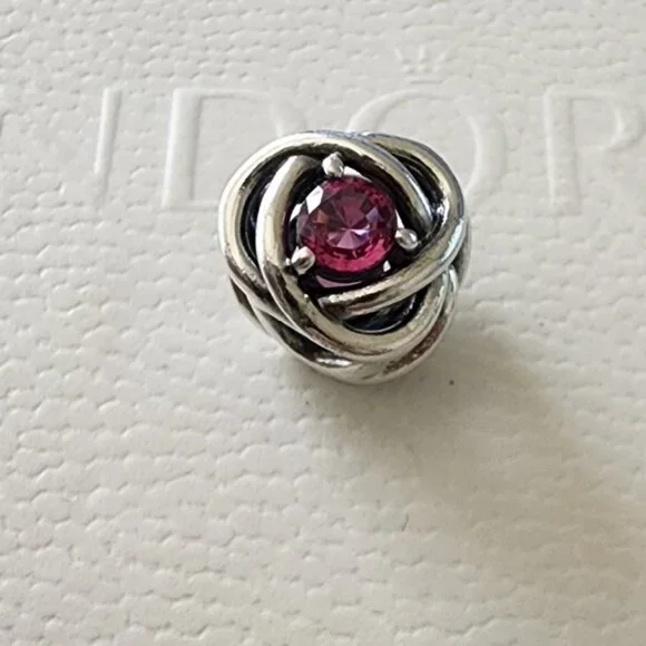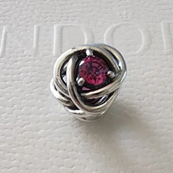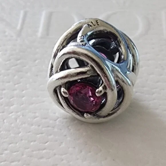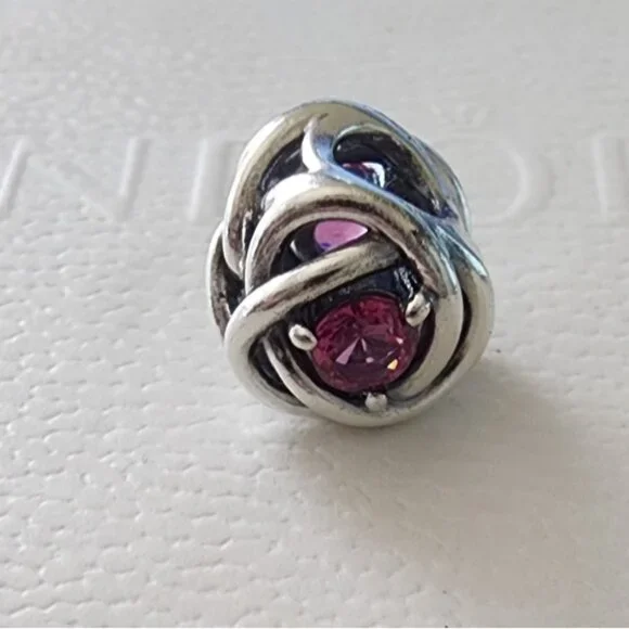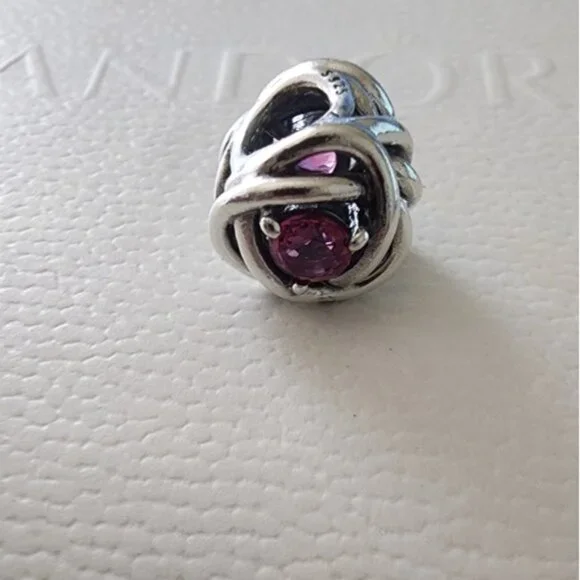 Authentic Pandora Pink Eternity Circle CharmNew never usedbundle and saveFrom Pandora, add a pop of color to your bracelets and pendants with this Pink Eternity Circle Charm. This special piece is made in the shape of an infinity braid and is set with a magenta-colored crystal at its center. Symbolizing eternity, add this sparkling charm to your styling to give your everyday jewelry a bright update.
