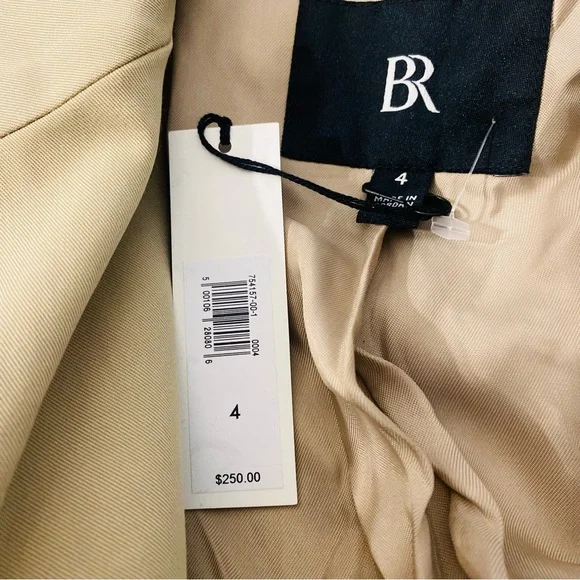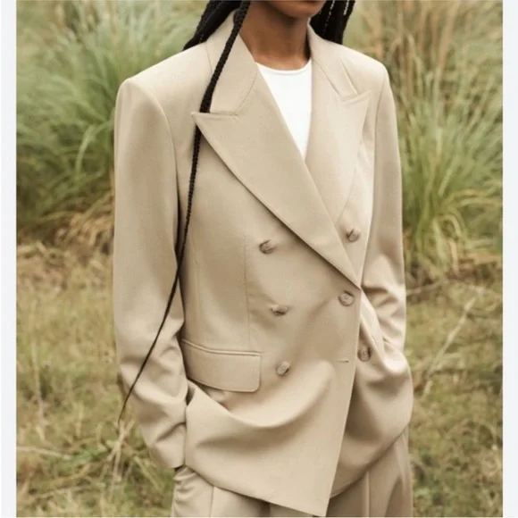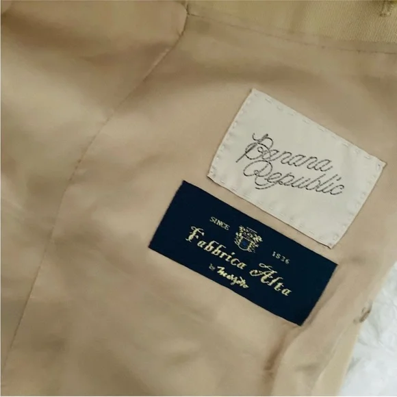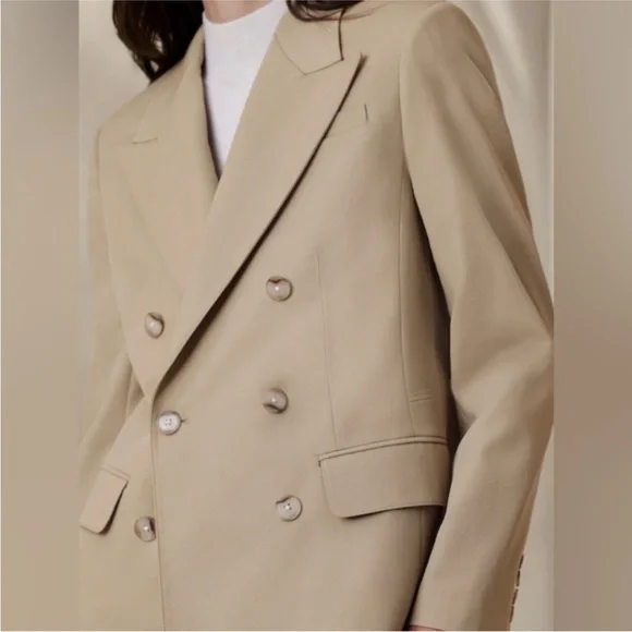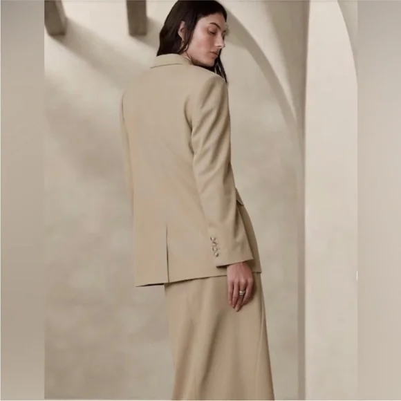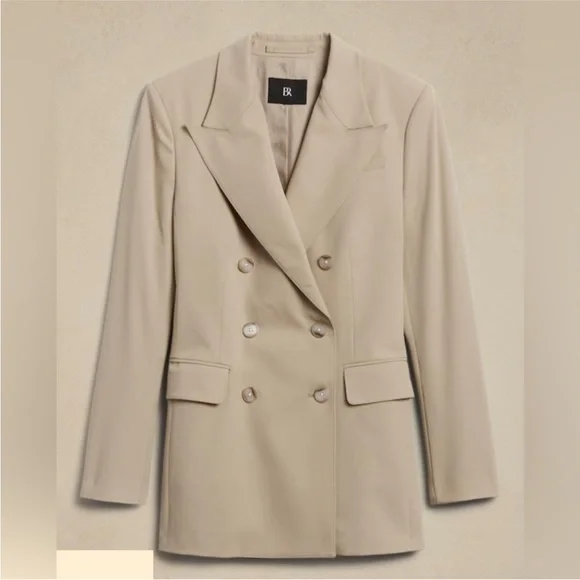 New with tags Banana Republic Vasto Relaxed Italian Wool Suit Jacket Size 4A double-breasted blazer with a relaxed boxy silhouette. Made from Italian gabardine material made from 100% virgin wool, this item is perfect for the cold season.relaxed fitMade using materials from Italian fabric manufacturer Marzotto.Peak lapels, double breasted3 outside pockets, 2 inside pocketsCenter vent lining on the backrelaxed fitlong sleeveLength that reaches to the hipsOuter material: 100% woolLining: 100% rayonDry cleaning(Model is wearing a blazer size 8)16-000