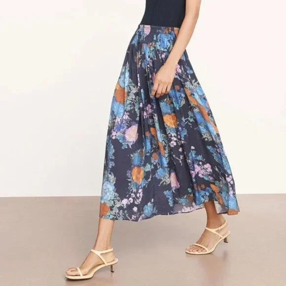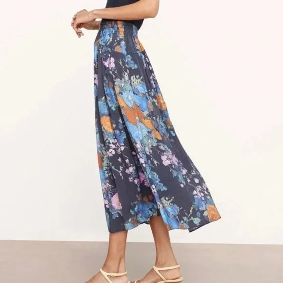 Brand new with partial tag, without price tagsize: XSMulti colorWaist:13.5" across (stretchy)Total length:32"Vince Painted Bouquet Smocked-Waist Pull-On SkirtStyle # V934230889Featherweight micro faille cascades from the waist for ethereal movement in our painted bouquet-print smocked skirt, best viewed when floating across a room.Elasticated waistband.Side-seam pockets.Invisible back zip.Hand wash cold. Tumble dry low and cool iron if needed. Or dry clean.82% Rayon, 18% polyester.Imported.
