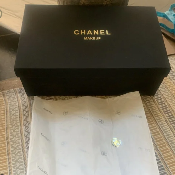 Chanel 4 Piece Bundle * "Chanel.com" LargeTravel Ditty Bag to store your travel essentials*Chanel Small Velvet compact pouch (the case that came with my Chanel powder compact purchase)*Chanel Tissue Paper (came in the box with my purchase)*Chanel Make up Box (the box I received that containined my $650 make up purchases from Chanel)The ditty travel bag measurements are shown in photosThe small velvet pouch has the CC logo & is a standard compact powder makeup case pouch size The hard black box is approximately 10-3/4" by 6-1/4" by 4-1/4" and looks unused. The Chanel tissue paper looks used.All pre-owned & used by me with a whole lot of of life left and will make someone very happy