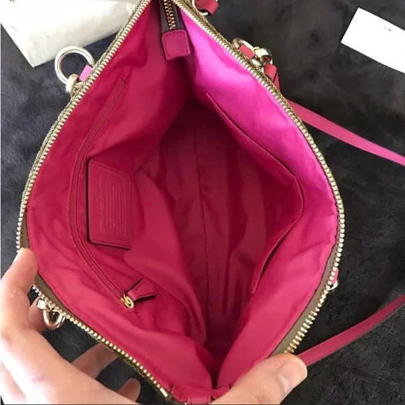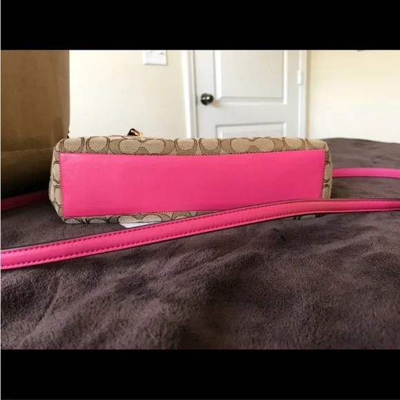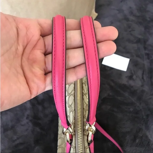 Pretty pink colorClassic signature logoWith long strapSize: bottom 10- top 13 *higth 9 inches