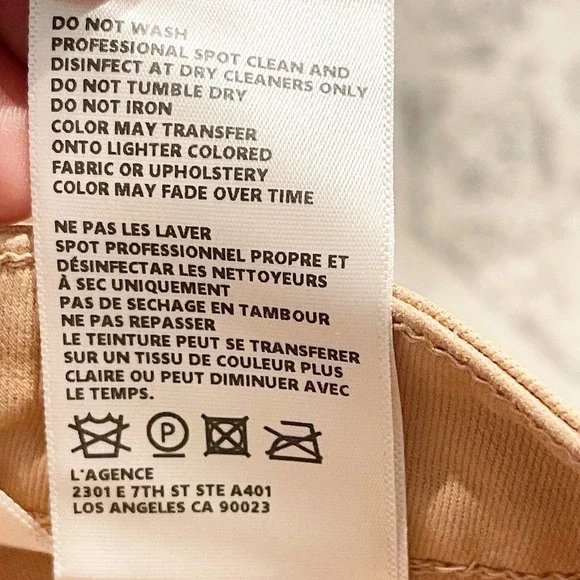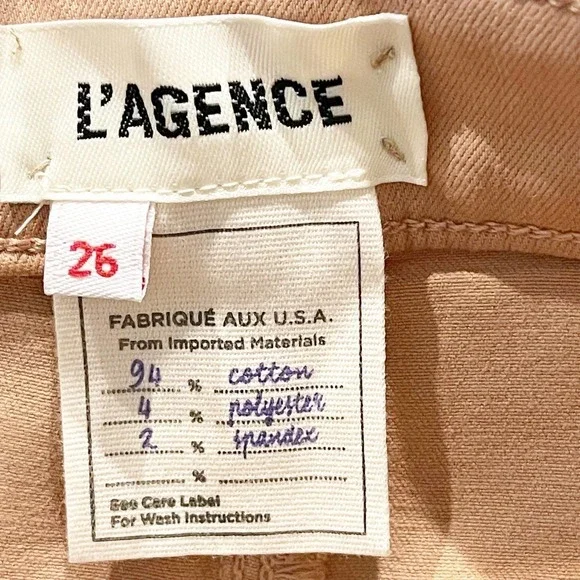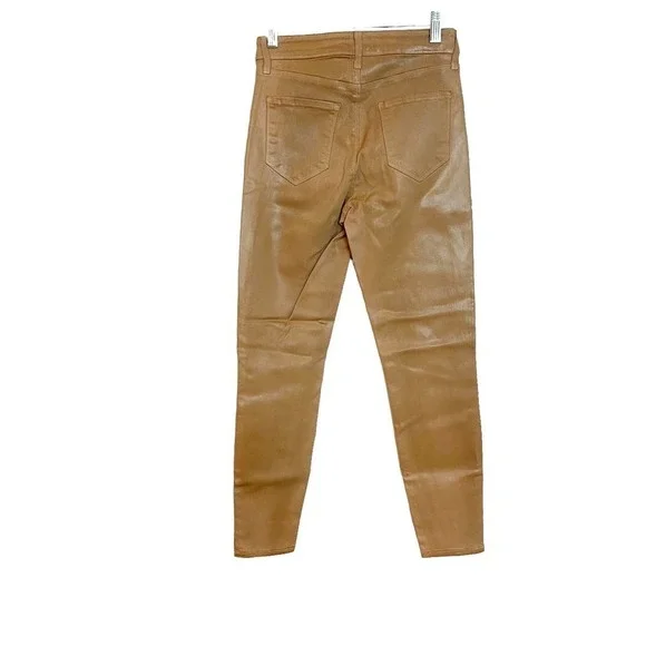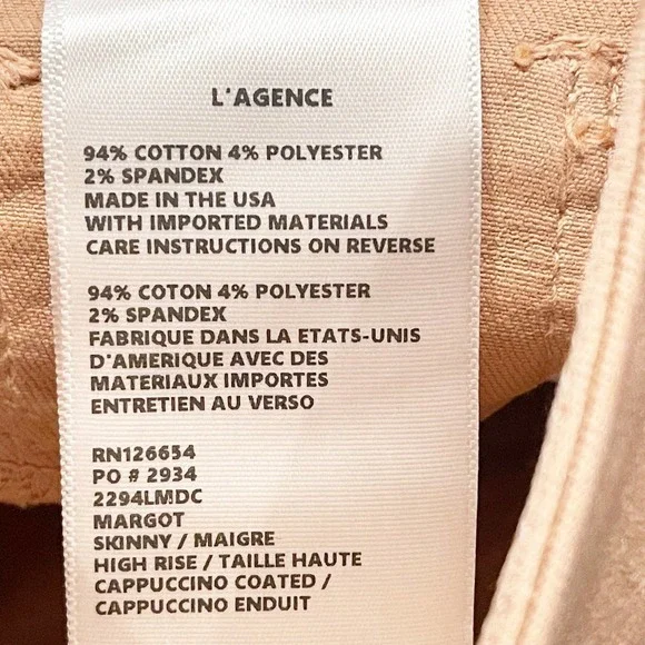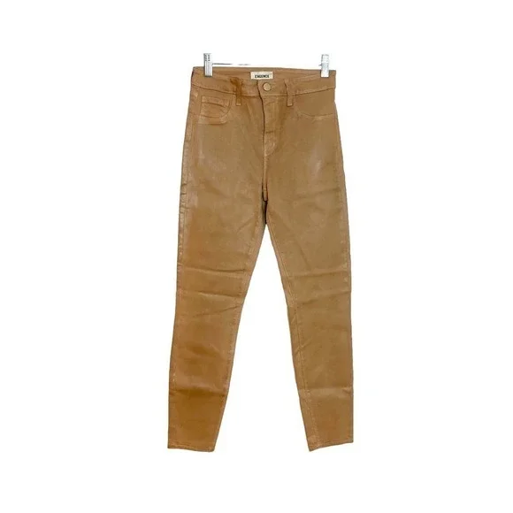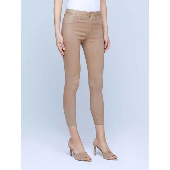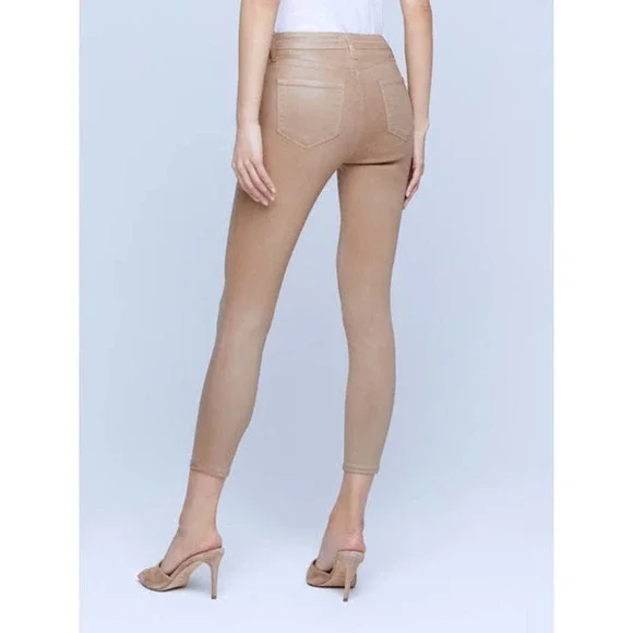 L'AGENCE Women's Cappuccino Coated Margot Coated Super Stretch Jean Size 26. The beloved Margot with a subtle, yet stunning sheen in a latte beige. The tapered leg hugs from hip to ankle, while the contoured waistband defines and slims the natural waist. A lightweight, light-catching coating is added to our premium stretch denim for an element of statement-making sophistication. 94% Cotton, 4% Polyester, 2% Spandex. Constructed in US of Imported Materials. jean, jeans, stretch, beige, tan, soft, comfy, lightweight, denim, tapered, designer, solid, casual, travel. B20823.