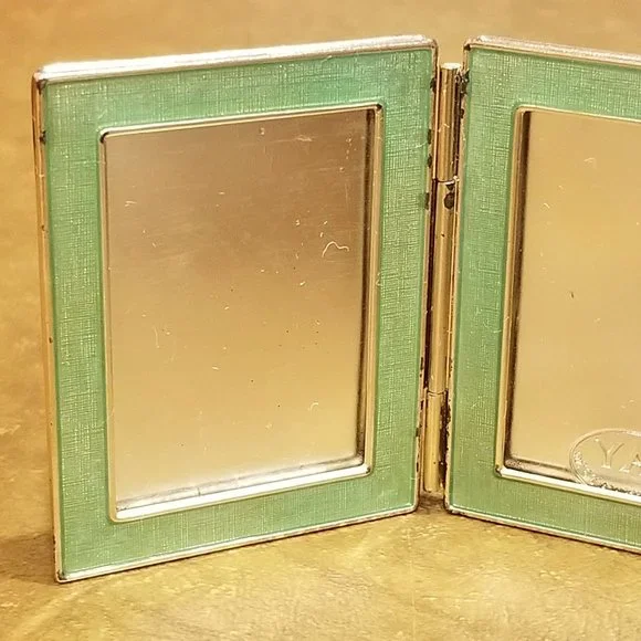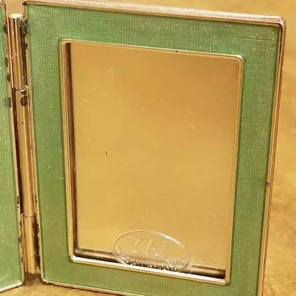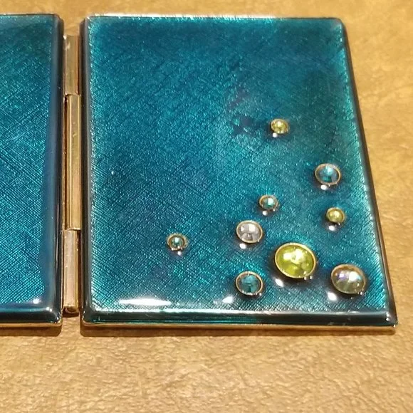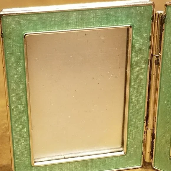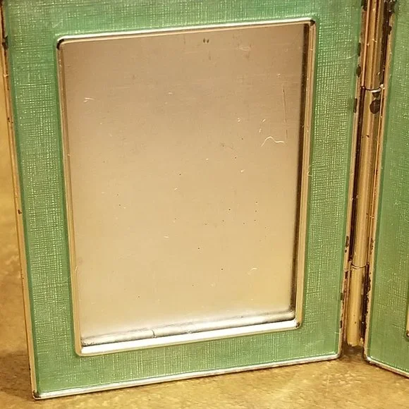 Price is firm.This is an AUTHENTIC Jay Strongwater Frame.This frame was purchased from Neiman Marcus. It is teal-blue color accented with Swarovski crystals. The frame is rectangle.This is a VERY RARE travel frame and meant to take it with you on your travels abroad.The frame is accented with a GORGEOUS bubbles done in Swarovski crystals against an enamel background.The frame is done in an antique silver-toned metal.The back also bears the Jay Strongwater name.A classic frame and wonderful accent to any home decor.Frame measures 2 1/4"H by 1 3/4"W.When fully opened the frame measures 3 9/16"W.Frame holds two 1 3/4" by 1 3/16" pictures.There are no missing crystals.Comes from a non-smoking home. No missing crystals.The inserts that go over the photos are plastic...this is the way all the Jay Strongwater travel frames came...unfortunately, the plastic inserts are missing.There is wear to the finish.This is pre-owned.Pictures are of actual item.