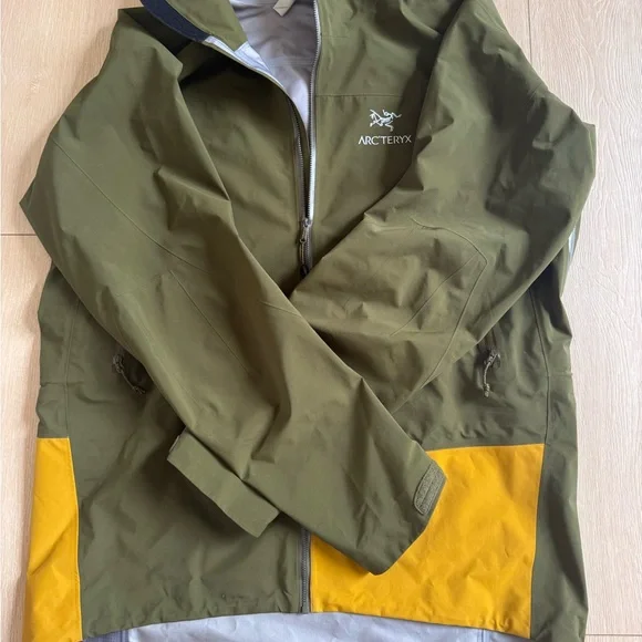 Experience ultimate weather protection with the Arc'teryx Zeta AR jacket, featuring a striking green and yellow color scheme. This technical shell is designed with a waterproof and windproof construction and a hood, ensuring you stay dry during any outdoor adventure. This jacket is extremely breathable and lightweight for all-weather use.