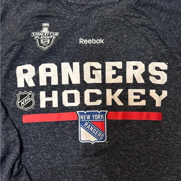 Pre Owned in Excellent Condition showing little to no signs of wear/useNew York Rangers Team Issued Pro Stock2016 Stanley Cup Playoff Family Reebok Long Sleeve Dri Fit Shirt Size Large