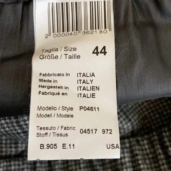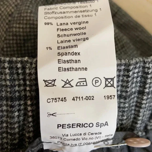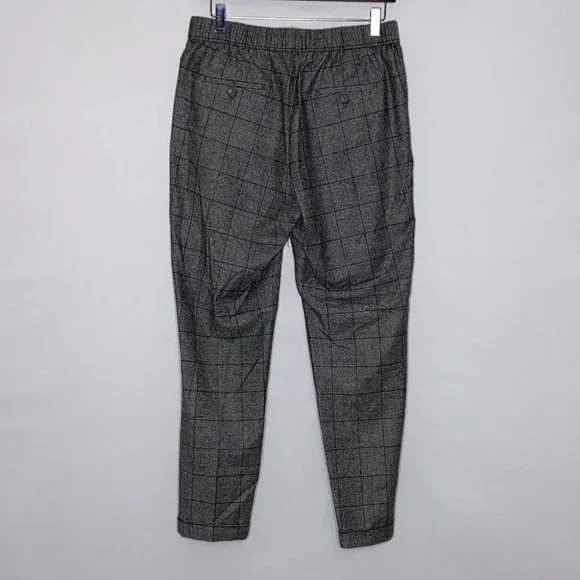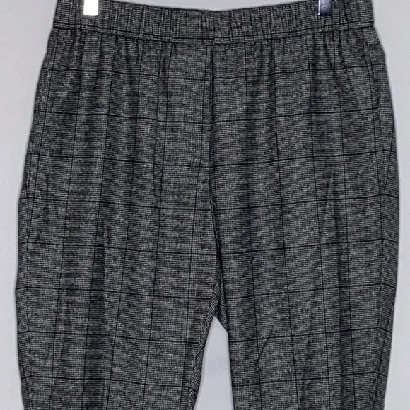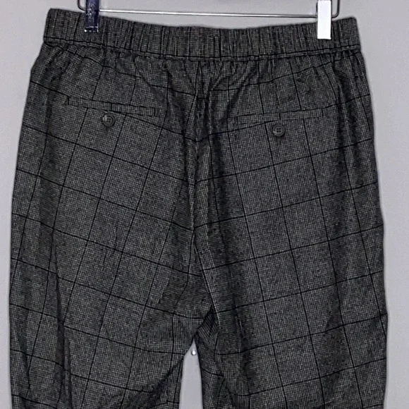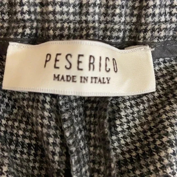 Peserico Wool Blend Plaid Cuffed Pull On Trousers in a EU size 44, US size 8. Excellent pre-owned, like new condition. Wide elastic waist band, 99% fleece wool and 1% elastane, cuffed hems, 2 front seam pockets, 2 back welt pockets with branded button closures. Extreme high quality. Made in Italy. Approximate measurements: 15 1/2" waist, 11" rise, 28" inseam. B35-2445