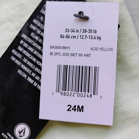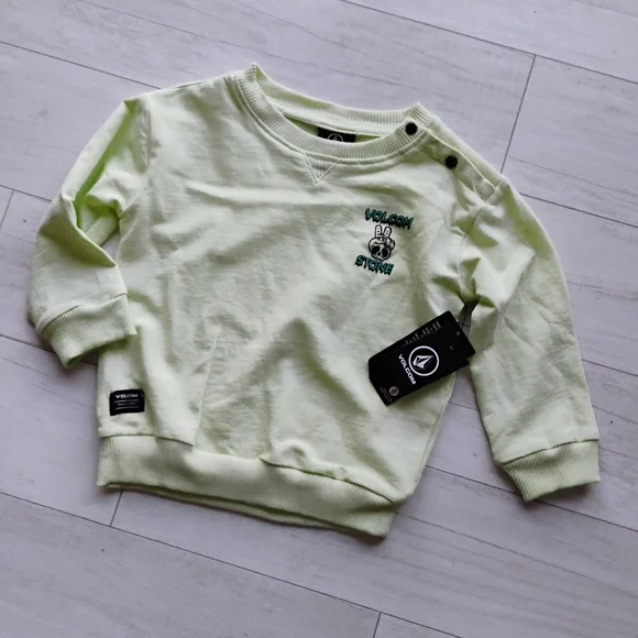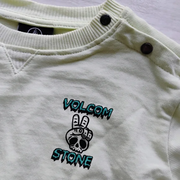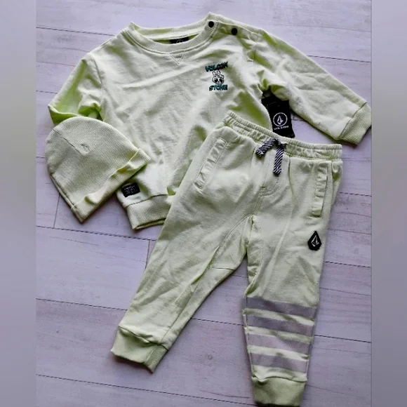 VOLCOM Baby Crewneck Sweatshirt, jogger sweatpants & BeanieAcid Yellow -Popover Crewneck SweatshirtShoulder buttons for easy on/offChest Logo Graphics Ribbed hems-Fitted JoggersStone logoSlant front pocketsElastic WaistBack Patch PocketRibbed Hems-BeanieRibbed KnitStone embroideryNEW Retail $60Sz 24mo Smoke & Pet free homeVolcom Hurley Billabong O'Neill Quiksilver VANS REEF MAUIandSons RVCA Columbia NIKE Carter's ROXY Ripcurl Brixton Carhartt surfer beach Burton Keen REI UGG crewcuts GAPkids Old Navy Nautica children's place Janie and Jack The North Face POLO Nike puma Converse Adidas Vans