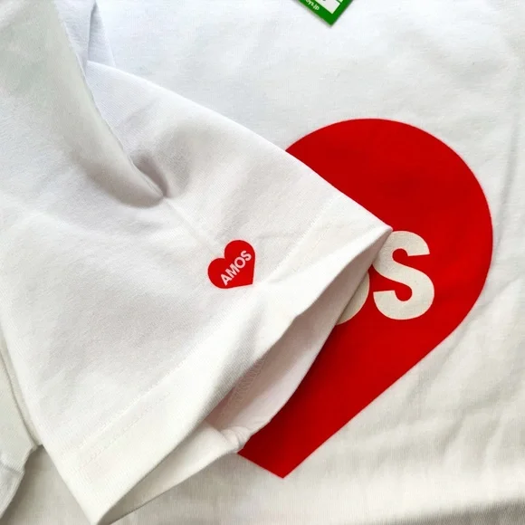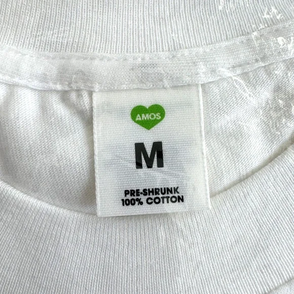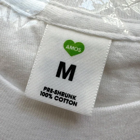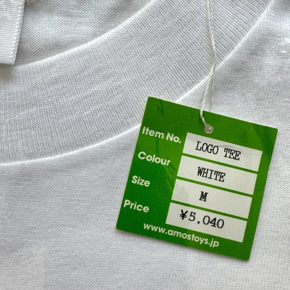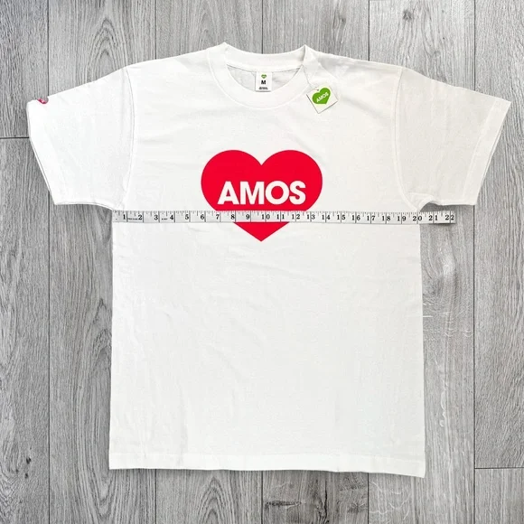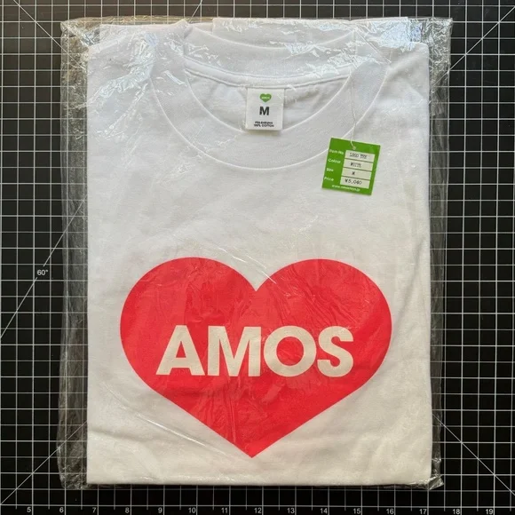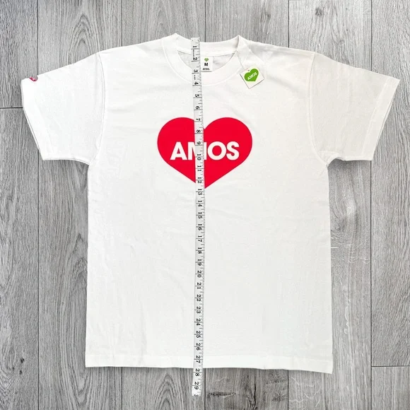 AMOS TOYS Logo Tee by JAMES JARVIS – White Size MThis T-Shirt was designed by James Jarvis and released by AMOS TOYS in Japan. The Tee features the iconic AMOS heart logo. It's a deadstock item, still sealed in its original packaging.Very RARE and UNIQUE!MeasurementsChest Width: 20” InchesLength: 27.5” InchesDetailsColor: WhiteSize: Medium Pre-shrunkMaterial 100% Cotton2001 Deadstock VintageDon’t miss out on owning this unique piece of James Jarvis x Amos Toys history!