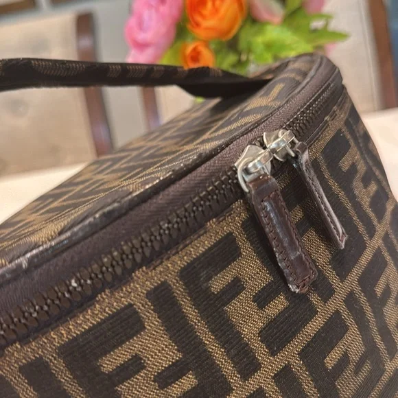 Authentic Fendi Brown Toiletry Bag with Iconic Monogram