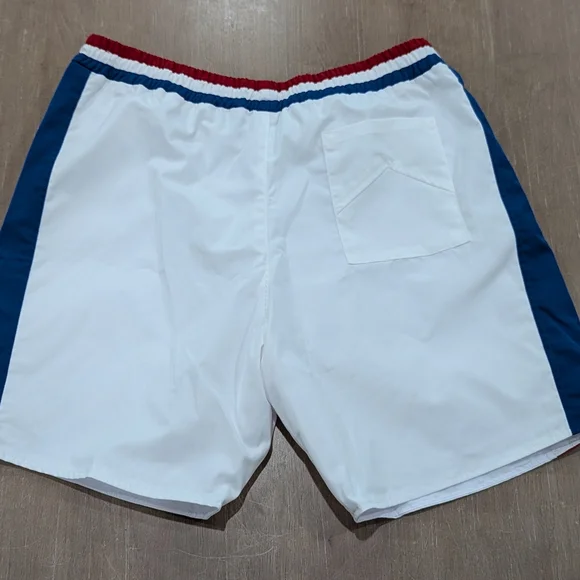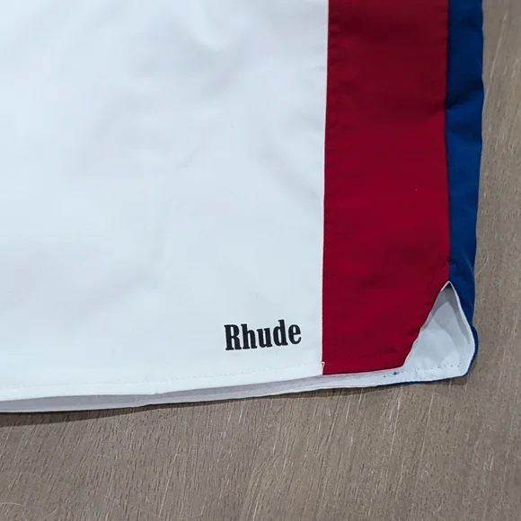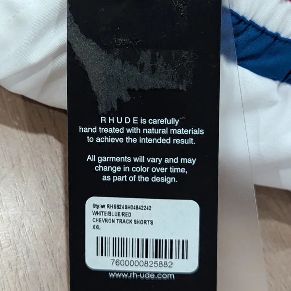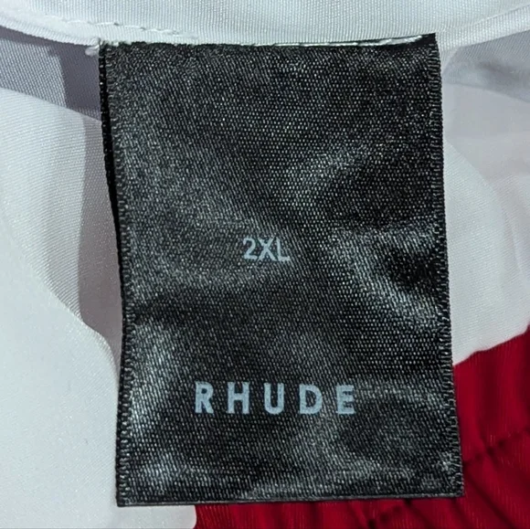 Up for sale is a brand new with tags Men's RHUDE Chevron Striped Track Shorts.Size: Mens US 2XLColor: WhiteThe Chevron Track shorts by Rhude feature a striped elasticized waistband, side seam pockets, and a single back patch pocket.Elasticized waistbandSide seam pocketsBack patch pocketPulls on100% polyesterMachine washMade in USARetail Price: $710+
