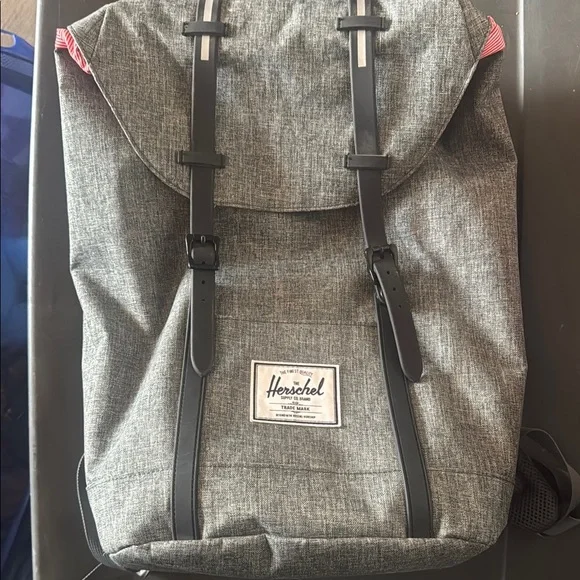 The Herschel Supply Company backpack features a stylish gray and red color combination, offering a timeless and versatile look. Designed with a classic rectangular shape, it embodies the brand's commitment to quality and minimalist aesthetics. Ideal for daily use, this backpack seamlessly blends functionality with style.