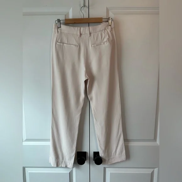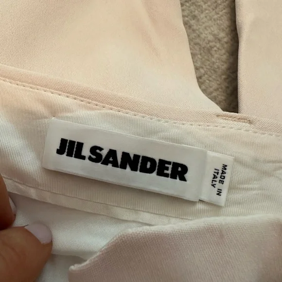 JIL SANDER Women’s Trousers Light Pink in Size 34/US Size 4. These are in good used condition, with a few small snags on fabric (hard to capture or see) as shown in photos. Also, back pockets haven’t fully been ‘opened’ only one side was partially. Very high quality and pretty color! Priced accordingly.