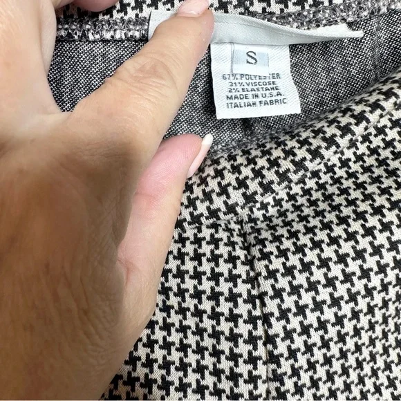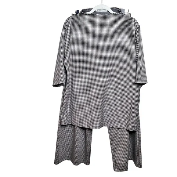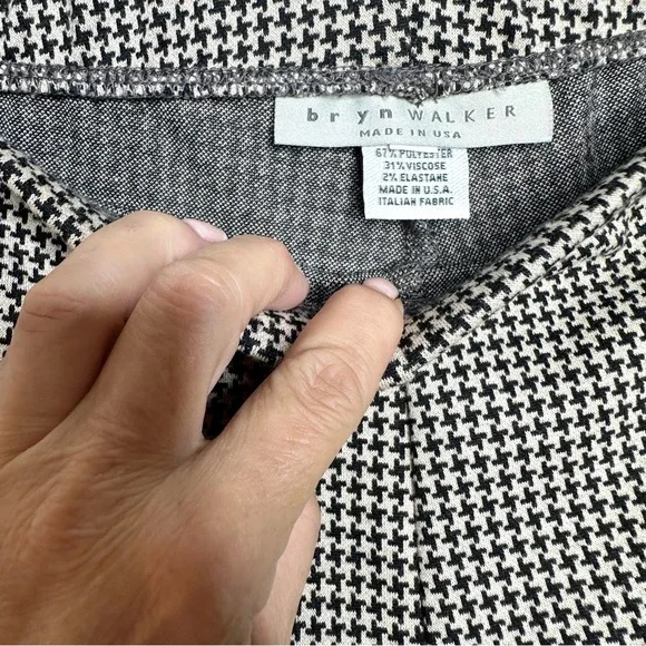 Bryn Walker Pant & Top Matching SetPants are small, top is extra small (top is oversized- see measurements in photos)Cream & Black Houndstooth printSuper soft knit fabricExcellent nearly new condition with no flaws, no wear. Worn once, hand washed, then hung to dry.Details:Adria Top: Boatneck, funnel neck3/4 sleeveDolman sleeveWide leg palazzo pants:An instant classic, this soft knit pant has a timeless houndstooth pattern. It has a wide long leg that flows beautifully and an all day comfortable stretch waistband. It provides a long lean look that's hard to resist. 67% polyester, 31% viscose, 2% elastanemachine wash cold, hang dry or dry cleanmade in USAsmall measures 26-30" waist, 29" inseam, 39" length*Model & mannequin photos are same style, slightly different colors. Included to show fit.Tags: Fall Autumn Winter Cozy