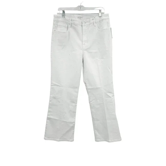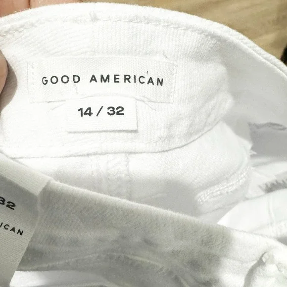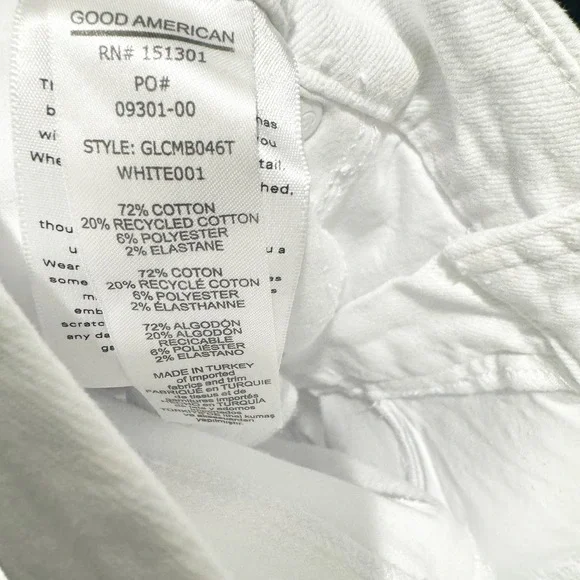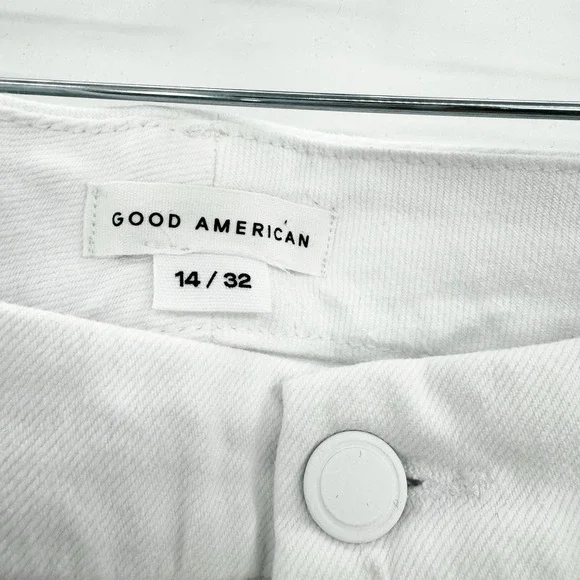 Good American Women's White Good Legs Crop Mini Boot Jean Size 32 NWT. A must-have for your spring-to-summer wardrobe, these bootcut jeans by Good American feature a flattering high-rise silhouette with cropped hems to show off your shoe game. The soft comfort-stretch denim fabric holds its shape wear after wear. Material: 72% Cotton, 20% Recycled Cotton, 6% Elasterell-P, 2% Elastane DenimSustainable practices: Made with 20% recycled cotton. Care: Machine Wash, Wash Cold, Dry Flat, Wash Inside Out. Style #: GLCMB046T.Jeans, women, casual, travel, party, cocktail, clubwear, winter summer, spring, fall, solid, soft, stretch, denim, comfy, crop, cropped, bootcut. B5-01-24.
