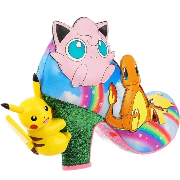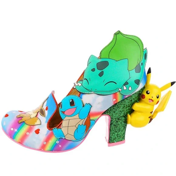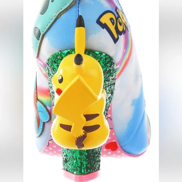 Brand: Irregular ChoiceSize 10 US / 41 EURNEW without box! Catch 'Em All with the LIMITED EDITION Irregular Choice x Pokémon collection!The party has started with Pokemon Party, where Pikachu is hanging from the glittery-heel! We invited all your favorites, such as Charmander, Eevie, Jigglypuff and Bulbasaur.The 3.5” heel is a little wider, making it remarkably easy to walk. The back is more narrow than the front part of the shoes, so that your foot won't accidentally slide out of the shoe. As usual, they have a soft footbed and the sole is decorated with a gorgeous print.