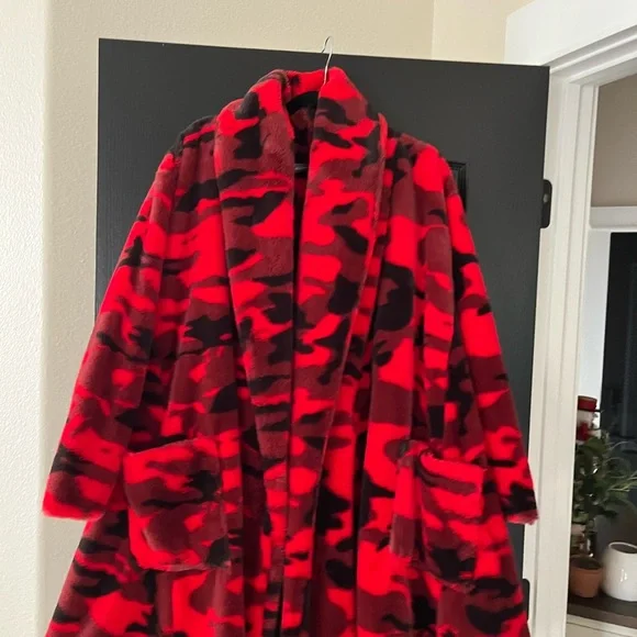 Alembika Faux Fur Red Camo Camouflage Coat Medium