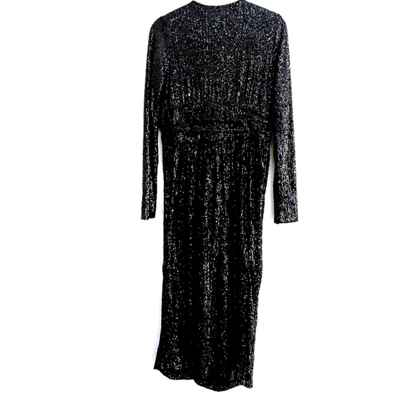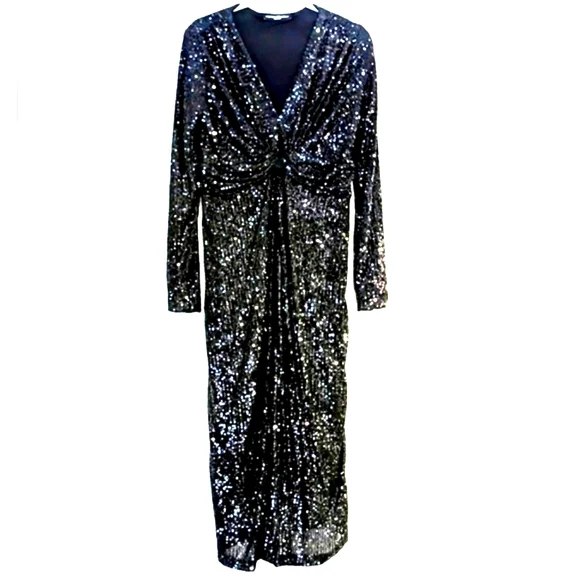 Pietro Brunelli Milano Black Sequin Maternity Evening Gown~ Excellent Condition: Gown was worn once.~ M (Medium) – Designed to accommodate growing belly.~ Style: Formal Maternity Gown.~ Features: All-over black sequins, ruched front twist detail, long sleeves, soft stretch lining, maternity fit.~ Pit to Pit 21"~ Sleeve 25"~ Length 51"~ 48% Viscose~ 46% Polyester~ 6% Elastane~ Overview: This luxurious black sequin maternity gown by Pietro Brunelli Milano is a show-stopping piece crafted in Italy. It features a glamorous V-neckline, long sleeves, and a flattering twisted front that gathers elegantly over the baby bump. The dress flows to a graceful mid-calf or ankle length (depending on height) and offers a stretch lining for comfort throughout pregnancy. The shimmering sequins catch the light beautifully, making it ideal for formal events, galas, or a dazzling night out. ~ Ships with protective packaging for safe delivery.~ Bin 10Fast Shipping!5 Star Seller!Sustainable BusinessSmoke Free EnvironmentBundle and Save 10%!All Offers ConsideredThank You For Shopping Souls Pleasure!Questions? Leave a comment below.