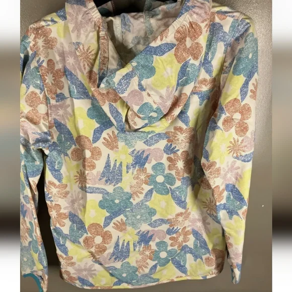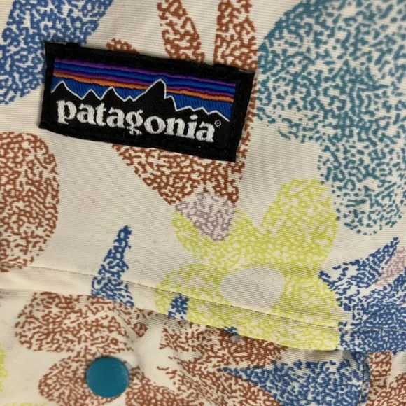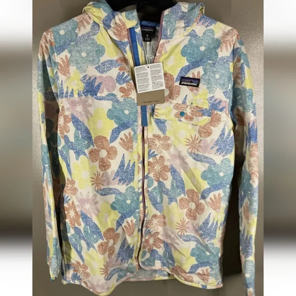 NWT New with Tags Patagonia Channeling Spring / NaturalKids Baggies Jacket FloralUnisex Size L Large 12FIT & DESIGN:Regular fit jacketConstructed with wind and water-resistant nylon fabric with a DWR finishContrast binding at center front and around hemElastic binding at cuffsFront-yoke seam with snapped chest pocketInternal wind flap with webbing detail and zipper garage at top for chin protectionReflective zipper pull at center frontInternal wind flap3-panel hoodUPF 40+