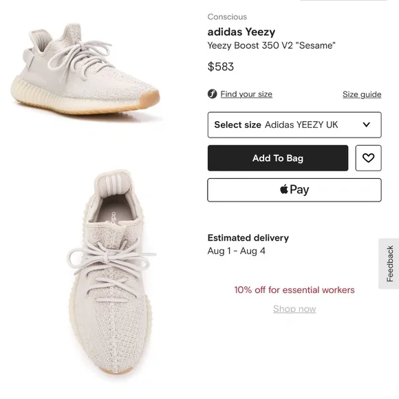 Brand new with detached stockX tag and other tag. Comes with original box. See images for details. Mens sz 10Supplied by a premier sneaker marketplace dealing with unworn, already sold out, in demand rarities. Each product is rigorously inspected by experienced experts guaranteeing authenticity. The adidas Yeezy Boost 350 v2 "Sesame" is a clean look for the always popular model from Ye and the Three Stripes. The November 2018 release features a light tan hue dubbed “Sesame” across the Primeknit upper in a tonal treatment. The ribbed translucent rubber midsole matches the upper, while the outsole comes in a translucent gum rubber shade. The tonal look in neutral tones without any stripes or text — like what is seen on most other colorways of the Yeezy Boost 350 v2 — results in a versatile and ultra-stylish offering of the silhouette. In other words, the adidas Yeezy Boost 350 v2 "Sesame" is ready to earn a regular spot in your rotation.ImportedCompositionLining: Polyamide 100%Sole: Rubber 100%Outer: Cotton 100%Brand style ID: F99710