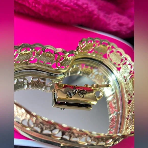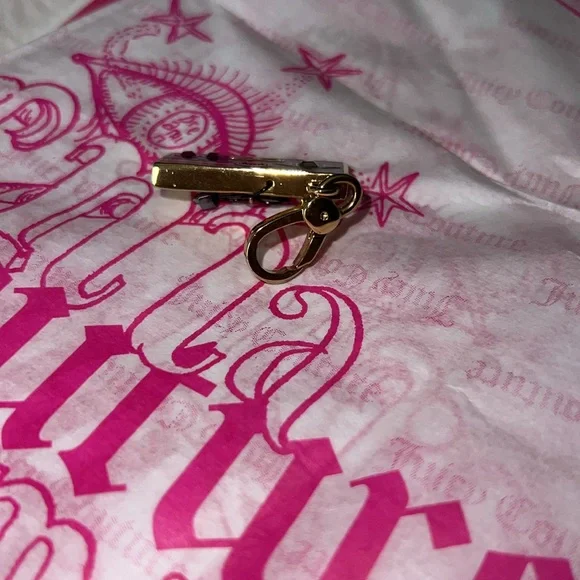 This is a SUPER RARE vintage Juicy Couture video game, controller charm.HTF Shiny gold tone with large lobster claspThis charm features, hot pink crystal rhinestones as buttons.One large crystal stone in the middle of the arrowsStamped with Juicy couture crown in gold on the front The back has cable wires tied up.So super cute🎀🎮 This charm has been kept and stored for many years and does carry some weight.For the diehard Juicy Couture fans, collector’s, and gamers out therethis one is a must 🎮🎀