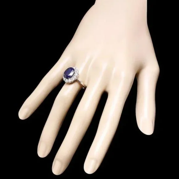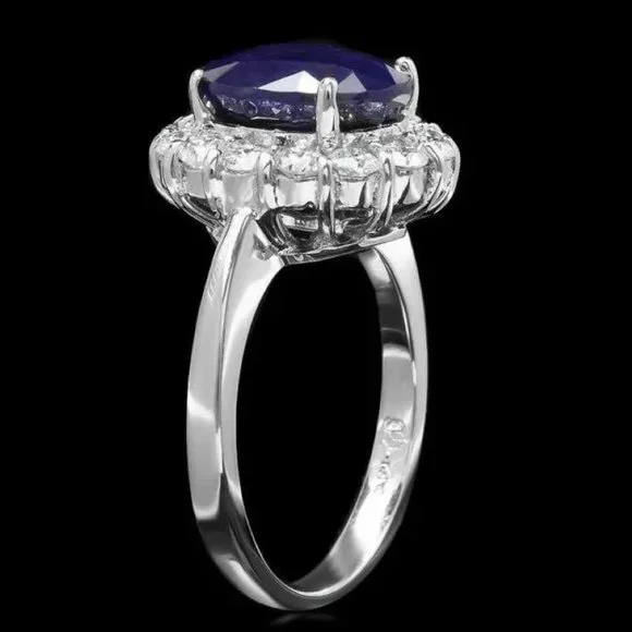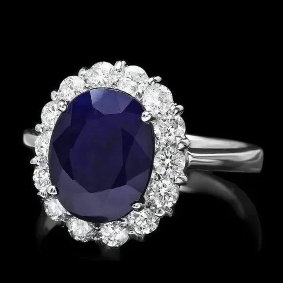 6.00 Carats Natural Blue Sapphire and Diamond 14K Solid White Gold RingTotal Blue Sapphire Weight is: Approx. 5.00 CaratsNatural Sapphire Measures: Approx. 11.00 x 9.00mmSapphire treatment: DiffusionNatural Round Diamonds Weight: Approx. 1.00 Carats (color G-H / Clarity SI1-SI2)Ring size: 7 (free re-sizing available)Ring total weight: Approx. 5.4 gramsDisclaimer: all weights, measurements and colors are approximate and may vary slightly from the listed dimensions or as seen in the image. All pictures are magnified to show the smallest of details. Please, refer to the item description for actual weight and size evaluation.SKU #PA416