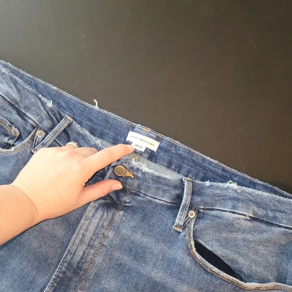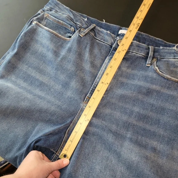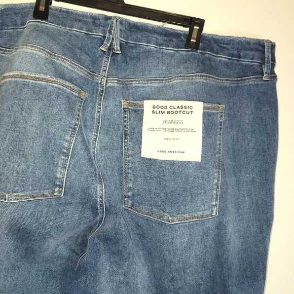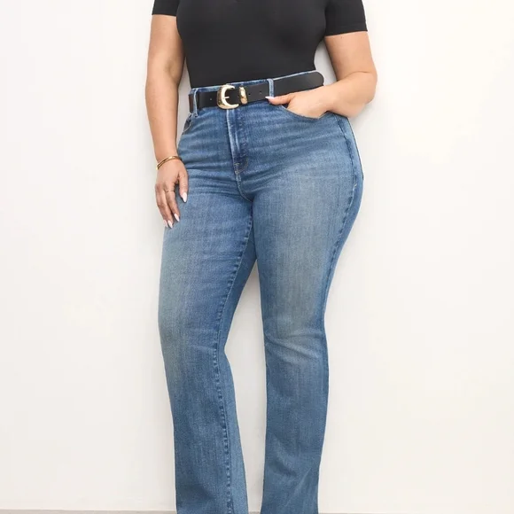 Item: women's Always Fits Good Classic Slim Bootcut Jeans, this is a one-size-fits-four design which is great for anyone that regularly experiences bloating or consistent weight fluctuation, ultra high rise with a long slim fit featuring a modern bootcut, flat tummy tech to help shape you, stretchy recovery denim for a comfy fit, plus size 28-32 and originally $169Style Profile: high waisted, boot cut leg, reinforced belt loops, gap-proof waistbandBrand: Good AmericanCondition: new with tags All my items come from a pet-friendly, smoke-free home. ☺️