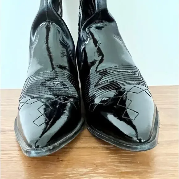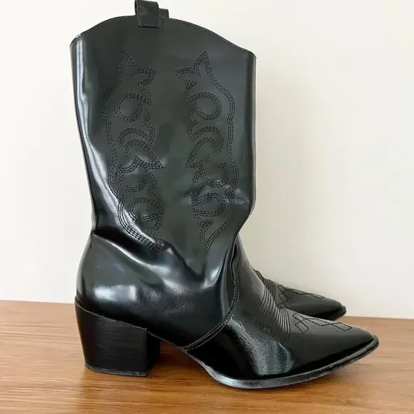 Vicson Juana Shiny Leather Mid-Calf Pointed Cowboy Boots Black Women's Size 8Heel height: 2”Condition: 8-9/10 gently used - used couple of times. some scuffs on leather and light ear on outsole Brand Vicson Size: 8 Color: BlackPointed toeMid-calfBlock heelNeoprene interior Pull on style Shiny leather Vintage inspired stitching festive, concert, y2k, preppy, streetwear, runway, stylish, trendy, going out, city girl, party, night out, leather, heels, office, work, career, western, leather, block, western, cowboy5 star seller - 5.000 + items sold - Fast shipping - Closets off influencers and fashion collectors-Shop with confidence - Smoke-free clean storage environment -Bundle and Save! - New arrivals every week