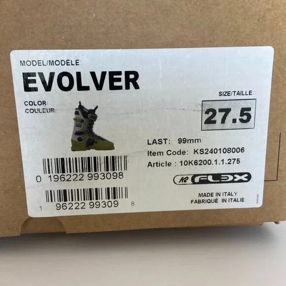 NWT K2 Green, Black, & Gray 2025 FL3X Evolver Ski BootExcellent ConditionMade in ItalyThese are technically kids or junior boots but they are a size 9.5 Mens, see size chart.Fully Heat Moldable – Both the boot's shell and cuff are capable of being heat molded to a variety of foot shapes for a truly custom fit.Weight: 10 poundsSki, Skiing, Winter, Snow Sports, Terrain Park, Soft, Warm, Comfortable, High Performance, Heat Moldable, Freestyle, All Mountain.