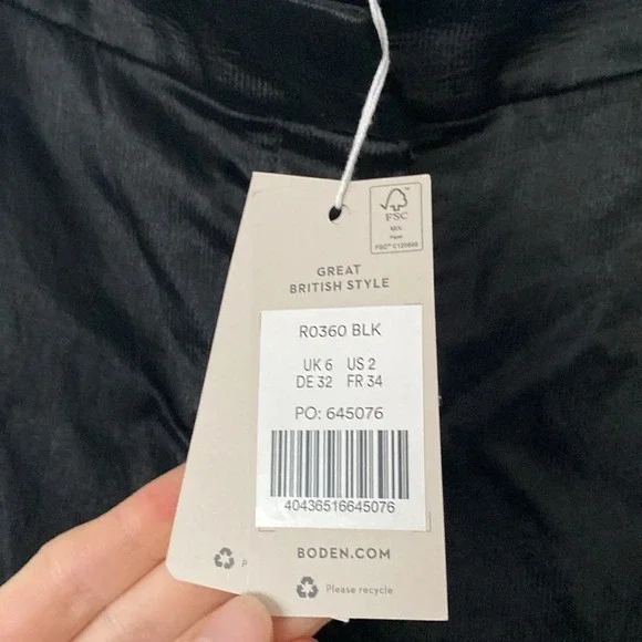 Gorgeous brand new with tags Boden High Rise Palazzo pants in black satin. Size 2 no damage, soft material that is so comfortable and flattering. Perfect pants for the holidays, or year round for the office. “Inside Leg Length 31.1"/79cmFitted through waist and hip with a wide legRelaxed fitHigh riseSide pocketsBack welt pocketsUnlinedButton fastening at centre front waist with zipped fly”☀️open to ALL offers☀️ NO trades☀️ bundle for MAJOR discounts!☀️ ask me any questions ☀️ please use the offer button for all offers☀️ all sales are final and all offers are binding ☀️ if I miss you comment, please comment again