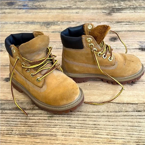 timeless and iconic boots for your little!unisex toddler timberland bootssize 9nubuck genuine leatherGREAT overall condition, clean inside, no odor, soles are in perfect condition. there are marks/scuffs mostly on toes of both shoes which I show in detail photo.lots of other babe items in my closet (including another pair of size 9 timberland winter/hiking boots) BUNDLE + SAVE!smoke free, pet free home