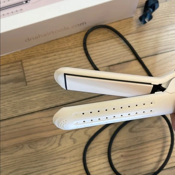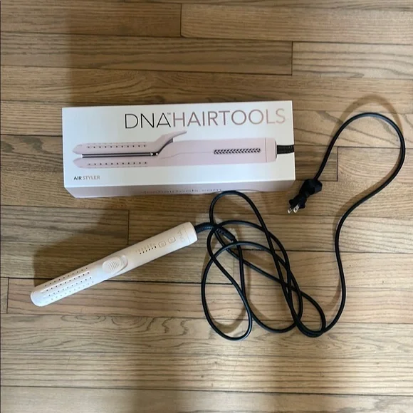 Retails $400The pictured item is the DNA Hair Tools Air Styler, a 2-in-1 hair styling tool designed for both straightening and curling. Key features include:Cool air technology: Vents release cool air to set styles and lock in curls for longer-lasting results. Ceramic plates: Extra-long ceramic plates ensure even heat distribution. Ergonomic design: A lightweight body and easy-to-use clip facilitate effortless styling. Versatile styling: Suitable for all hair types and lengths, allowing for a variety of looks. Infrared light: Protects hair from heat damage during styling. Single tool: It can create a variety of styles, both straight and wavy.