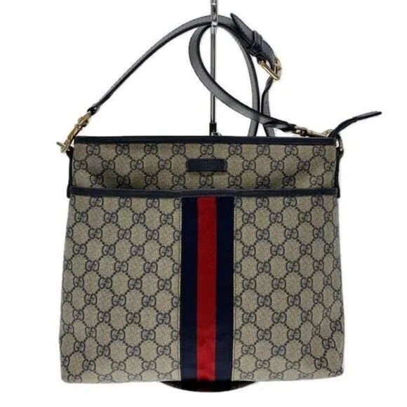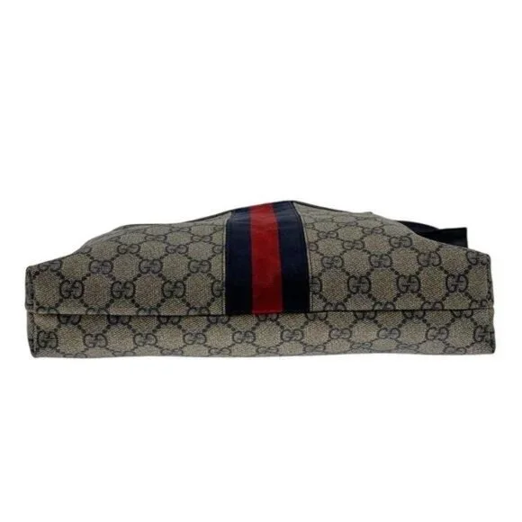 This is an authentic GUCCI GG Supreme Monogram Web Medium Flat Messenger Tote Bag in Light Beige/Tan, Dark Blue Navy and Red. This chic messenger bag is crafted of Gucci GG monogram coated canvas, with a dark blue navy and red web stripe Ophidia detail and leather trim. The bag features an adjustable shoulder strap. The top zipper opens the bag to a dark fabric interior with zipper and patch pockets.Height: 9.45"Width: 11"Depth: 2"Shoulder Strap Total Length: 42.12-46.06" adjustableCondition: Excellent vintage condition. Minor signs of wear present. Please refer to all photos as they are part of the description.📦 We Ship Daily💎 100% Positive Feedback❣️ Follow Us For Latest Designer Arrivals⚜️ AUTHENTICITY GUARANTEE: All The Reluxe™ items are carefully selected and authenticated by our team of experts. Our items are stored in climate-controlled warehouses and come from smoke-free/pet-free homes. This item has no offensive odors. Preloved vintage items may smell like their materials/storage.We specialize in sourcing rare and vintage top condition luxury pieces from Chanel, Louis Vuitton and more. If you are looking for a specific piece leave us a comment and we will do our best to find it for you!Tags: Gucci crossbody, gucci shoulder bag, gucci ophidia, gucci sherry line, gucci cherry, gucci supreme, gucci camera bag, old gucci marmont vintage y2k dionysus, 2 way, 2way Authentic Gucci GG Vintage Ophidia Sherry Line Crossbody Bag Leather Black Purse30960