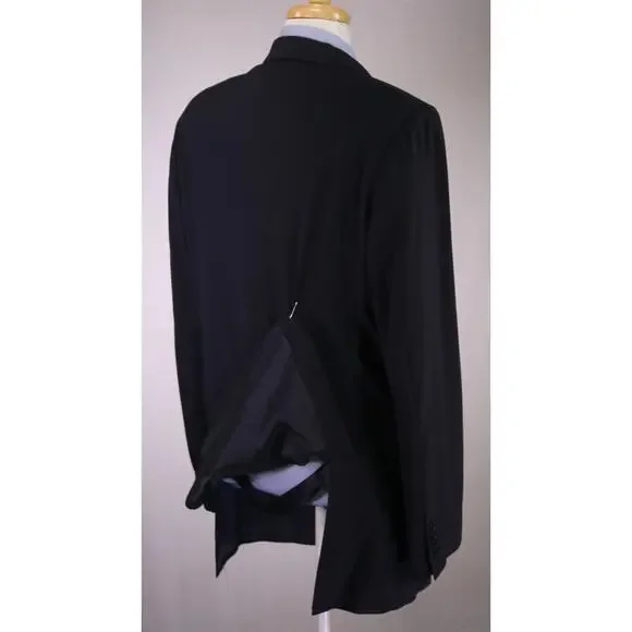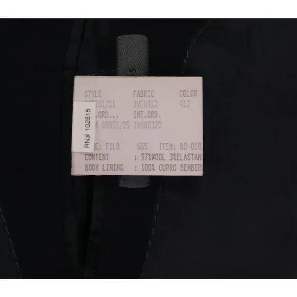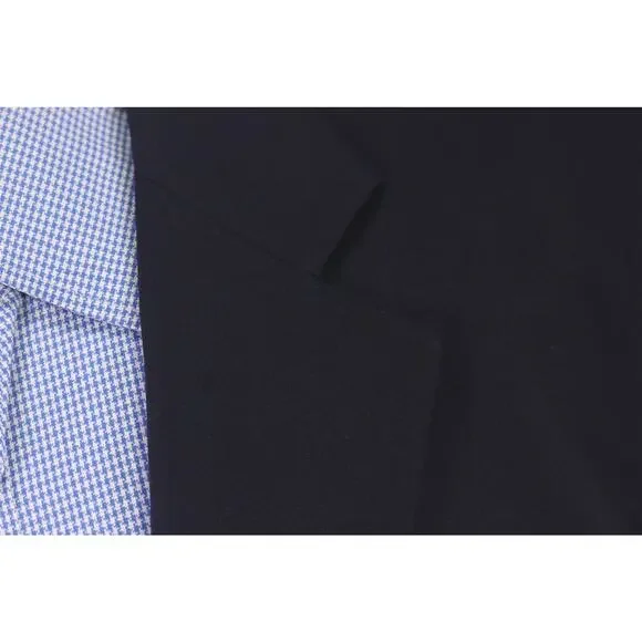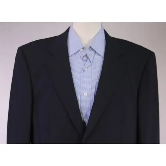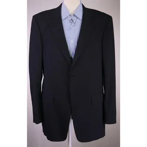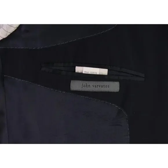 Brand: John Varvatos * Size: 42L. Please follow my measurements * Measurements (Laying flat, Unstretched):Jacket:Underarm to Underarm on back: 23 inchesLength on back(from under the collar): 33 inchesWaist (at the middle/top button): 21 inchesShoulder to shoulder: 19.75 inchesSleeves from shoulder seam to end of cuff: 28 inchesExtra material to sleeves: 1.75 inches* Material: 97% Wool 3% Elestane - Weight: Medium to Light Weight* Color: Black* Design: Solid* Jacket:Two Button Single BreastedDual VentThree Interior PocketsThree Exterior PocketsFour Faux Buttons on the cuffsFully Lined* Made in Italy* Condition: Like new. Gently Used. No stains or tears.* Inventory Code #B11603Powered by SixBit's eCommerce Solution