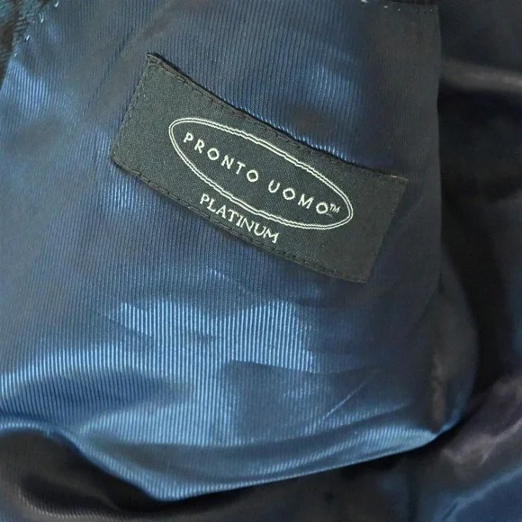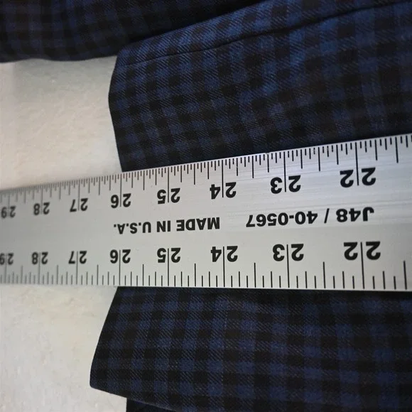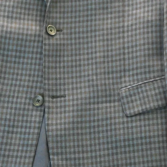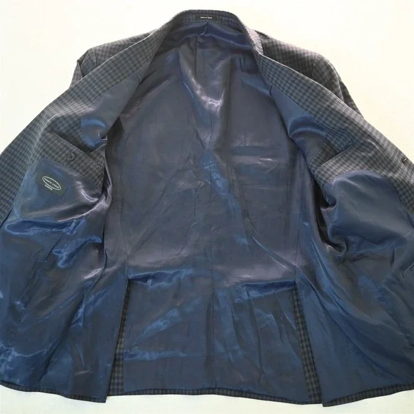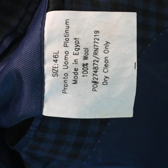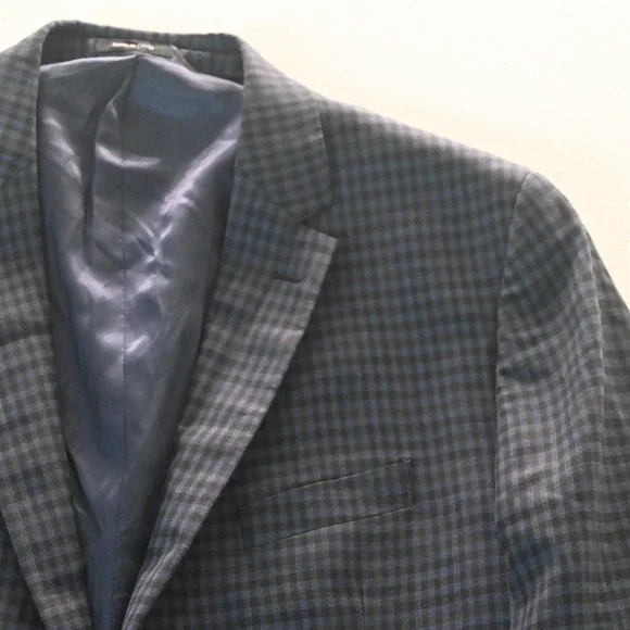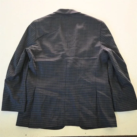Pronto Uomo Sport Coat- Size 46 Long * Blue Brown Gingham Check 100% Wool * Two-Button Jacket: Single Breasted, Notch Lapel, Double-Vented * see photos for care | fabric content | country of origin | item measurements in the following order: chest, natural waist, sleeve length, shoulders & overall length