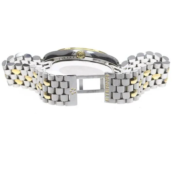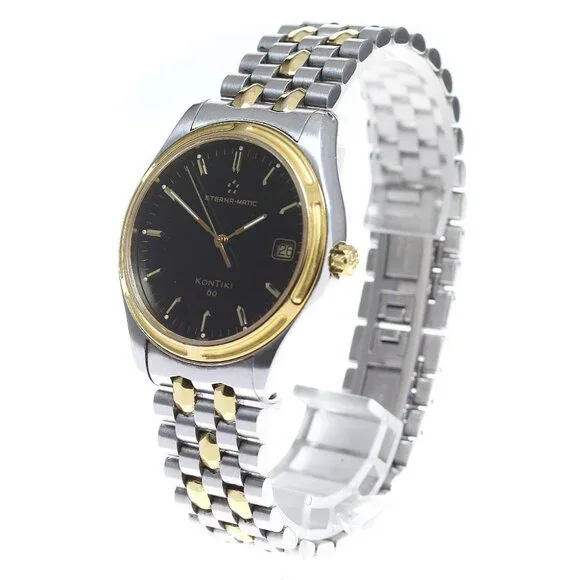 BrandEternaModelKontiki 60GenderMen'sMaterialStainless Steel/Gold Plated / Stainless Steel/Gold PlatedDial colorblackMovementAutomaticRef Number1402.40FunctionsDateAccessoriesGuarantee(booklet)、Operating InstructionsCase sizeAbout 35mm (1.4inch)(not including the crown)Wrist sizeAbout 18.5cm (7.3 inch)Lugs width18mm(0.7 inch)Keeping time+1 sec/day(measured value) ※Reference valueGuarantee information2001/12/12State of the woundGlassNo damageCaseLight scratch, small woundBezelLight scratch, small woundBelt/BraceletLight scratchHandLight damage, StainsDialLight damage, Stains(index )BuckleLight scratch