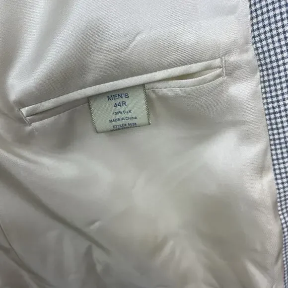 Vintage Travel Smith Men's 44R 100% Silk Blazer Sportscoat Jacket Lined SmartStyle Notes: Countrycore / English Manor / PreppyExtra Details: Three front pockets (two still sealed), two internal pockets, comes with sealed pocket handkerchief and button!Size: Men's 44 RegularMeasurements: 44" Chest (22" Pit to Pit) / 33.5" Length / 20" shoulder width / 24" Sleeve (from shoulder seam)Condition: Excellent pre-owned condition - no signs of stains, holes or tearsShipping: Sent within 2 business days, but usually as early as I can! Items are cleaned before they get sent out. Thank you for taking a cheeky look! If you have any questions please do reach out to me - I am happy to help :)
