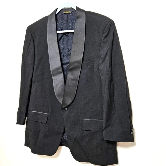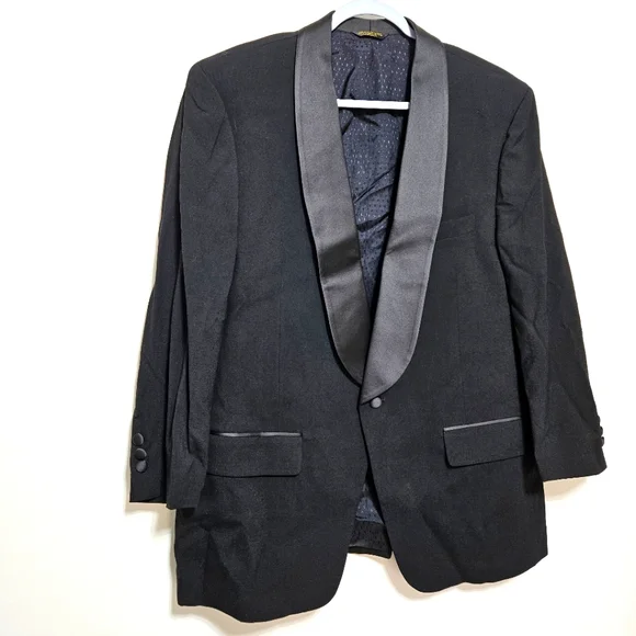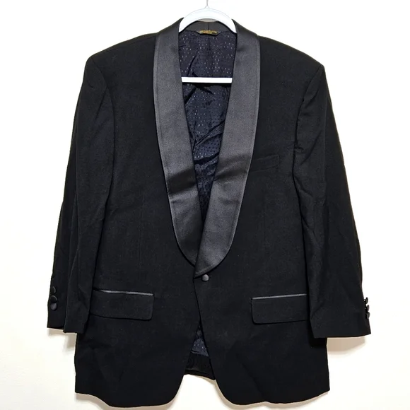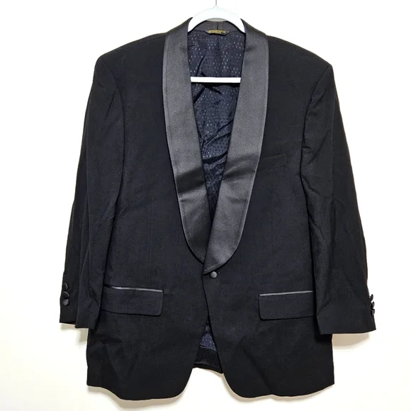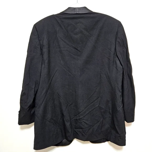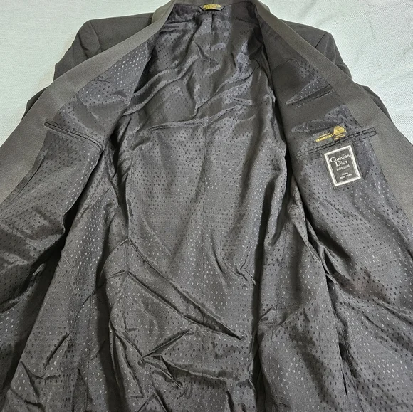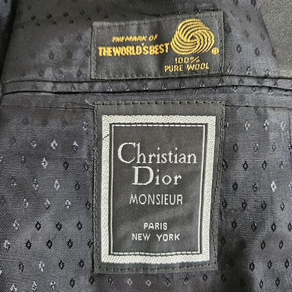 Vintage Christian Dior Monsiuer Mens 100% Pure Wool Formal Tux Blazer Jacket BlackI did find a tag in a pocket that has 44 - I believe that must be the sizePlease see the measurementsWith a few small flaws on back of jacket- please review all pictures 2 faux front pockets1 Button ClosureThis sophisticated black blazer features a sleek satin lapel, perfect for formal occasions. Elevate your style with this timeless piece.Thank you for checking out my shop! Items are shipped from a smoke-free, dog-friendly home.Please let me know if you have any questions before purchasing. Sales are final. Thank you, and have a great day!