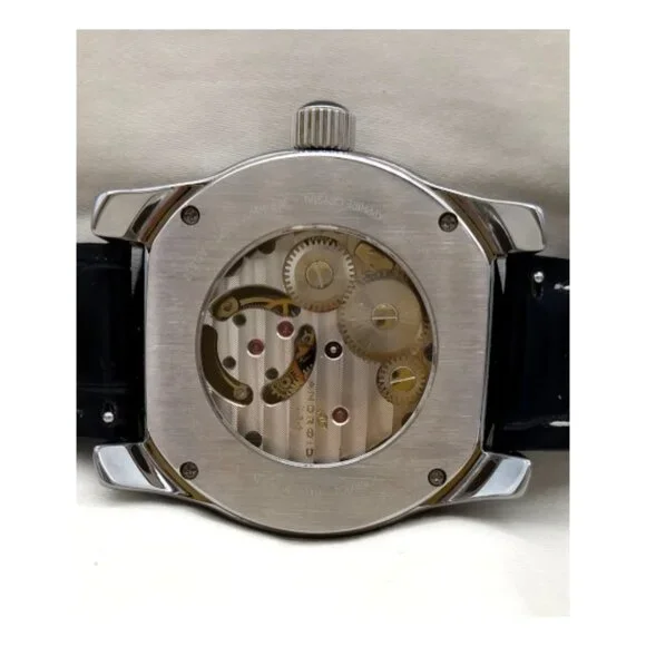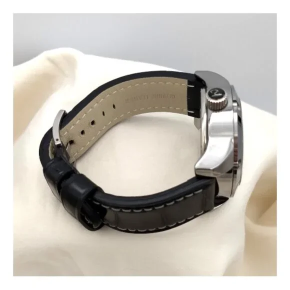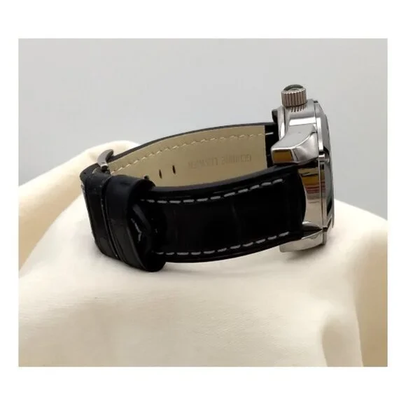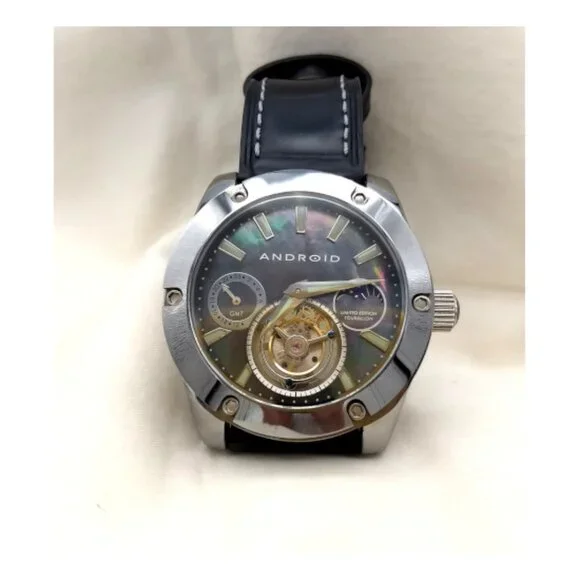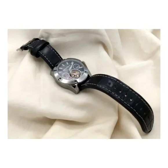 Numbered, limited edition of 252/1000, mother of pearl dial and the awesome Tourbillion movement housed in a tungsten case with an alligator embossed leather strap.•Case and Dial-Case Size: 48mm-Case Material: Tungsten-Bezel Material: Tungsten-Bezel Color: Polished Tungsten-Crown Type: Push-Crystal Type: Sapphire-Dial Material: Mother of Pearl-Case Back: Exhibition•Movement-Components: Japan-Caliber: HZ3310 Tourbillion, 19 Jewels-Function Type: Automatic (Manual)•Water Resistance: 100mt•Band-Type: Split Strap-Material: Alligator-embossed Leather-Tone: Black-Length: 215mm-Size: 25mm-Clasp: Buckle & Tang •Other-Seconds Hand-24-Hour GMT Dial-AM-PM (Sun/Moon)-Luminous Hands/Hour MarkersCondition is like new. Stored in watch armoire. No original box. Comes in a leatherette watch box.See pics for condition as they are part of the description. Due to differences in lighting, monitors, cameras, etc., you may see color variations and reflections. Please ask questions before purchasing. All purchases are video recorded during the packing and shipment process.