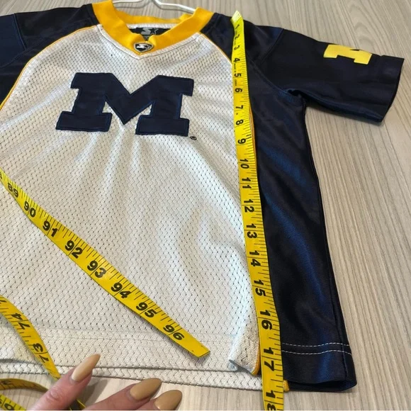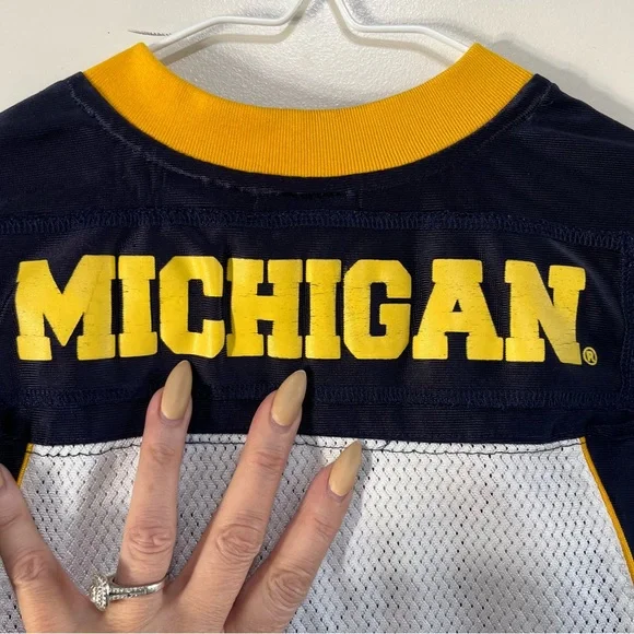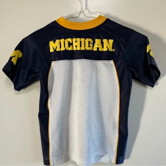Vintage/Rare Michigan Wolverines Toddler Jersey Size 5/6Partially stitchedPartially meshOne small flaw, a little tiny hole in the mesh (see last pic), other than that in excellent condition!See pics for measurementsTags: vintage, 90's, Y2K, Go Blue, Michigan, Wolverines, football, fan, college, sports, fanatic, Big Ten