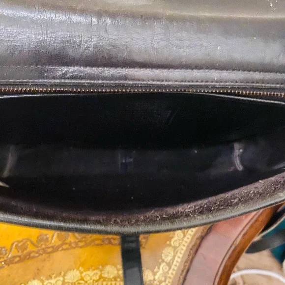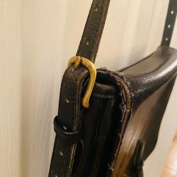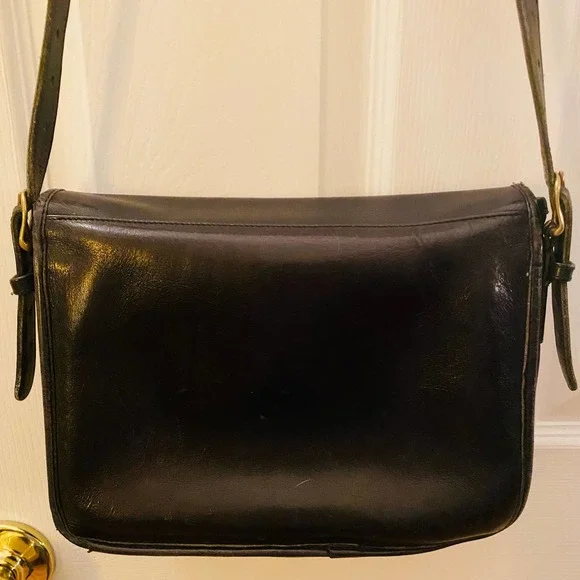 Coach Vintage NYC Black Saddle Pouch Large Shoulder Leather Bag 95851980s VintageMade in NYC, USAThis is a Coach classic buckled shoulder bag. Pocket under the Leather Lined FlapSolid brass hardwareClosure tab tucks into leather “keeper” beneath the flap 47” adjustable strap Crossbody or Shoulder Bag with adjustable straps 10.5" x 8"x 2”Please see pictures for usage