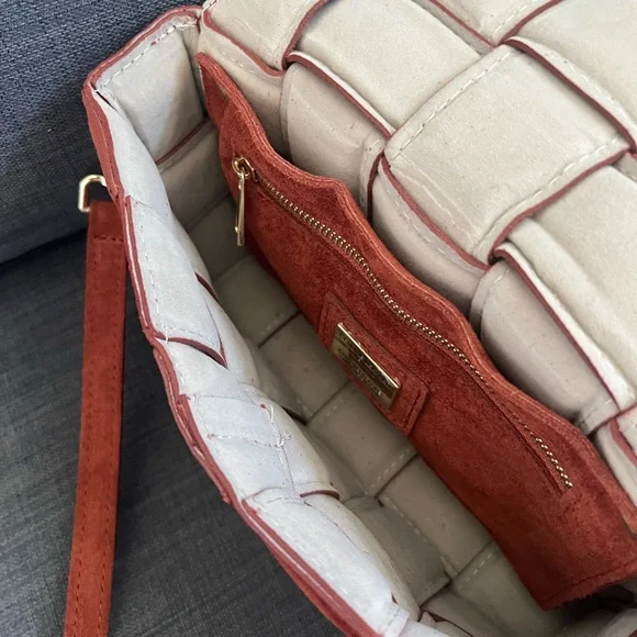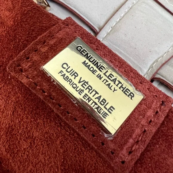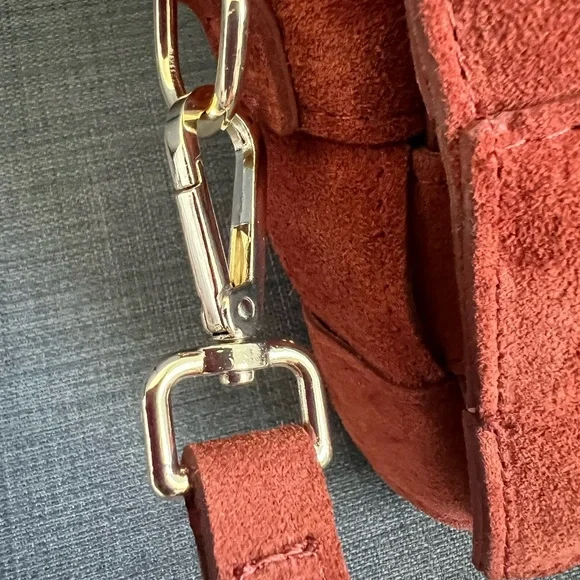 BRAND NEW WITH TAGCROSSBODY HANDBAG PURSE SUEDE GENUINE LEATHER WEAVED DESIGN BEETS COLOR GOLD HARDWARE LONG ADJUSTABLE DETACHABLESTRAPINTERIOR: ONE ZIPPER POCKETAPPROXIMATE MEASUREMENTS:L10.5” x H7” x W3”TRENDY AND DURABLE!❤️👜❤️MADE IN ITALYPET & SMOKE FREE 🏡🌺PLEASE SEE MY ENTIRE COLLECTION🕶️👛👜💼🎒💍👗🕶️