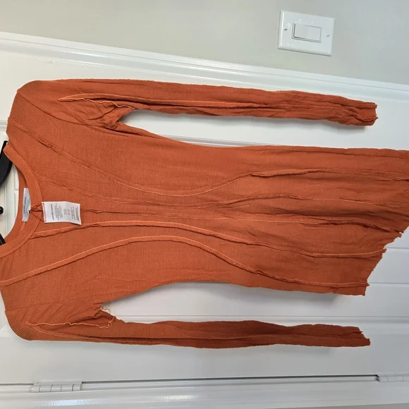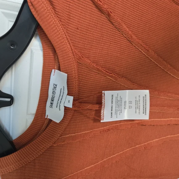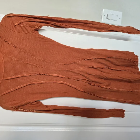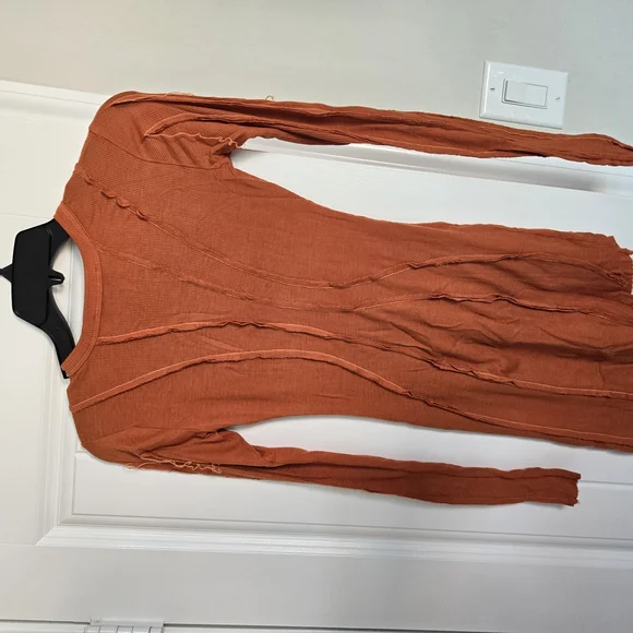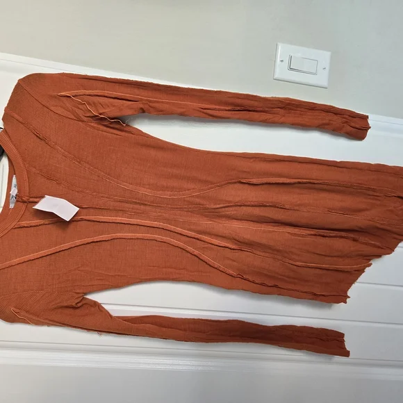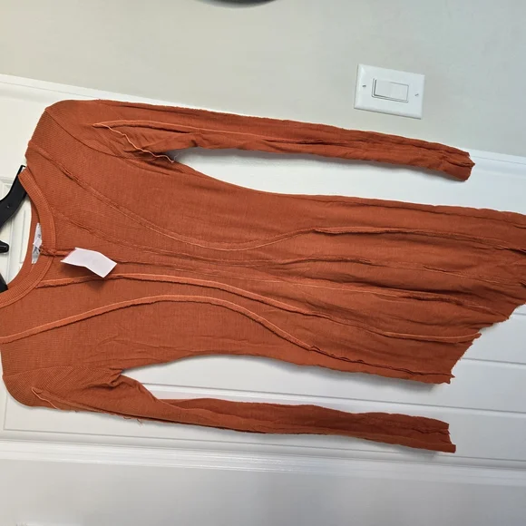 Turn heads on your night out with this striking SAMI MIRO VINTAGE dress, featuring an asymmetrical high-low hemline and a bodycon fit. The long sleeves and crew neck add a touch of elegance, while the rich brown and orange hues make a bold statement. Crafted from a structured fabric, this dress showcases geometric seaming for a modern, architectural look.Size XSBrand new
