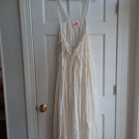 Stand out in this stunning maxi dress featured in a button-front silhouette with gorgeous lace paneling throughout for added shape and dimension.V-necklineStrappy back detailTie closure at back neckCare/ImportHand Wash ColdImportNew with tag Line through label to prevent store returns From a pet and smoke-free environment 100% Authentic