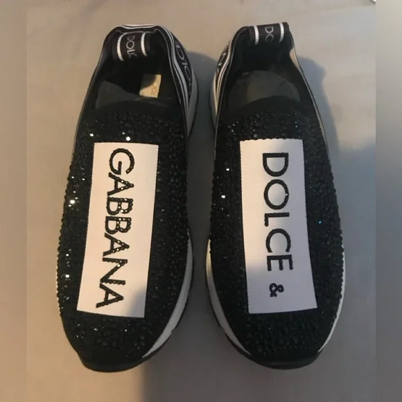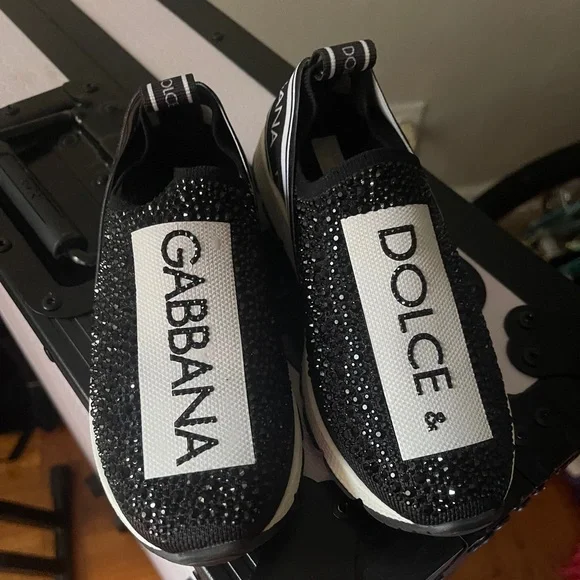 Black and White embellished Dolce&Gabbana Sneakers worn once comes with original box,smoke free home.