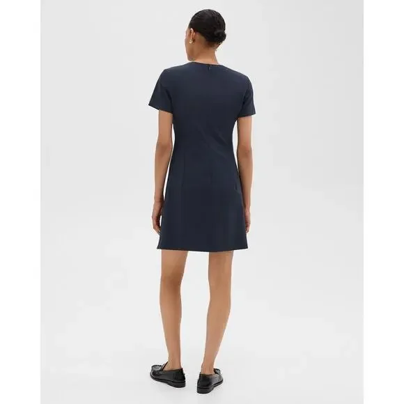 Tailored in a classic sheath silhouette, this short-sleeve dress features a round neckline and princess seams for a refined, flattering fit. Fully lined for comfort and structure, with an invisible back zip closure for a smooth finish. Material: 96% wool, 4% elastane. Offers stretch, breathability, moisture-wicking, and anti-odor properties. Made in China. Fits true to size, choose your normal size